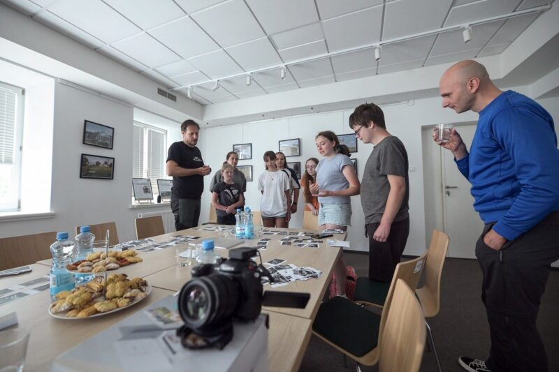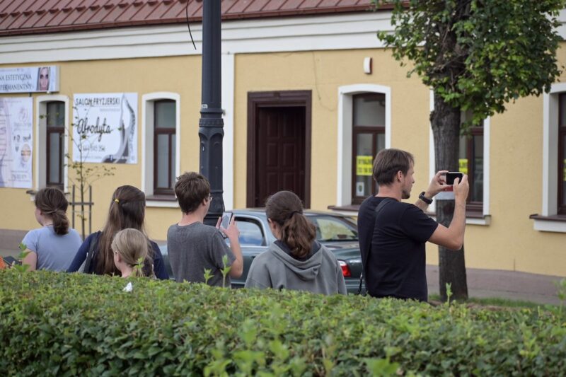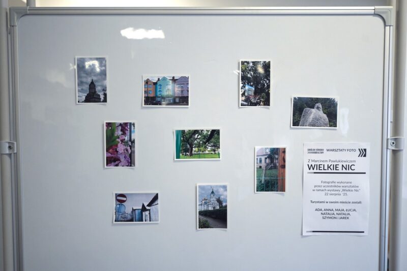 Pawlukiewicz poprowadził inspirujące warsztaty dla młodzieży. Przekazał swoje fotoreporterskie ’know-how’, ale przede wszystkim zachęcał by dokumentować fotograficznie rzeczywistość wokół i dzielić się tym z innymi. Warsztatowicze po dawce teorii wyszli z aparatami eksplorować miejską przestrzeń, by jak zachęcał fotograf – spróbować spojrzeć na własne miasto oczami turysty. Fotografie wykonane przez uczestników stały się częścią autorskiej wystawy Marcina Pawlukiewicza pt. „Wielkie nic”, którą otworzyliśmy w Kamienicy Tyzenhauza o 18:00.