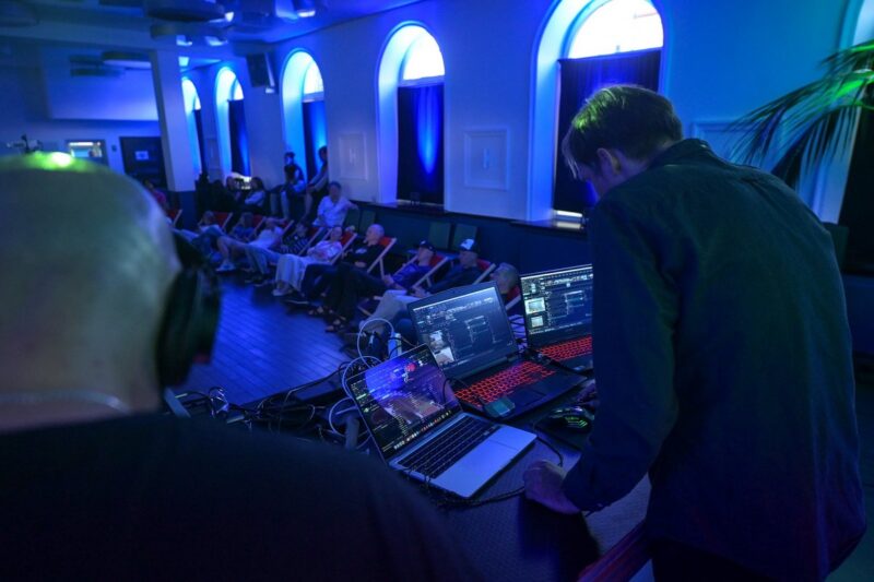 Po wernisażu Marcin Pawlukiewicz, tym razem jako VJ i DJ, połączył swoje siły z Michałem Gieniuszem – Mutanaum i zaprosił do przestrzeni ambientu, która została specjalnie wykreowana w sali Lira SOK. Michał Gieniusz – Mutanaum zaprezentował autorski set muzyczny, który stał się dźwiękową odpowiedzią na fotografie Pawlukiewicza. Muzyka była zarówno tłem, jak i przewodnikiem po kadrach, dopełniając i wzmacniając ich przekaz.