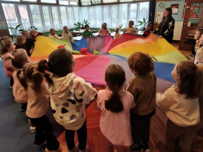 Filia Biblioteczna nr 2 (ul. Broniewskiego 18) postanowiła ten dzień wykorzystać do promowania zdrowego stylu życia z okazji obchodzonego również Dnia Jabłka. Bibliotekarka odwiedziła grupę „Tygryski” w Przedszkolu Nr 3 w Sokółce, organizując wyjątkowe zajęcia pełne zabawy, radości i edukacji. Była bajka-bieganka pt. „Jesienny ogród Krysi”, zabawy chustą animacyjną oraz aktywności plastyczne, które stały się jednoczesnym zaproszeniem do odwiedzenia placówki w najbliższym czasie.