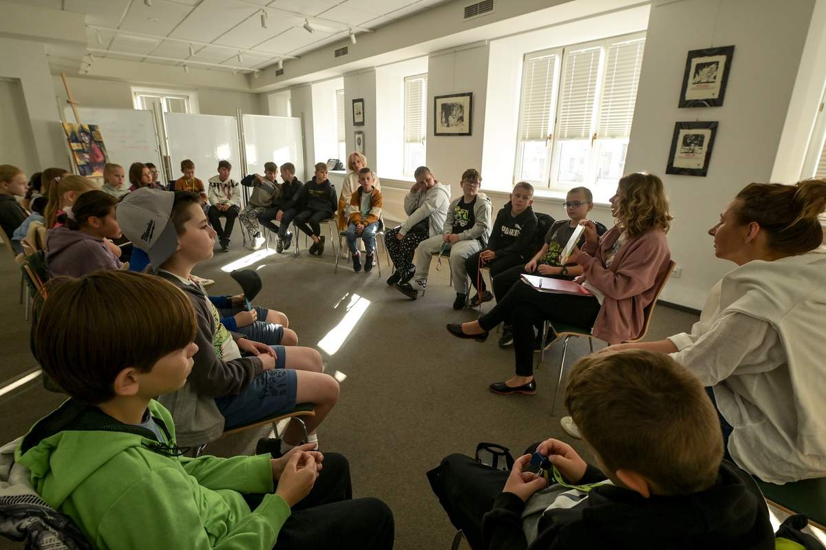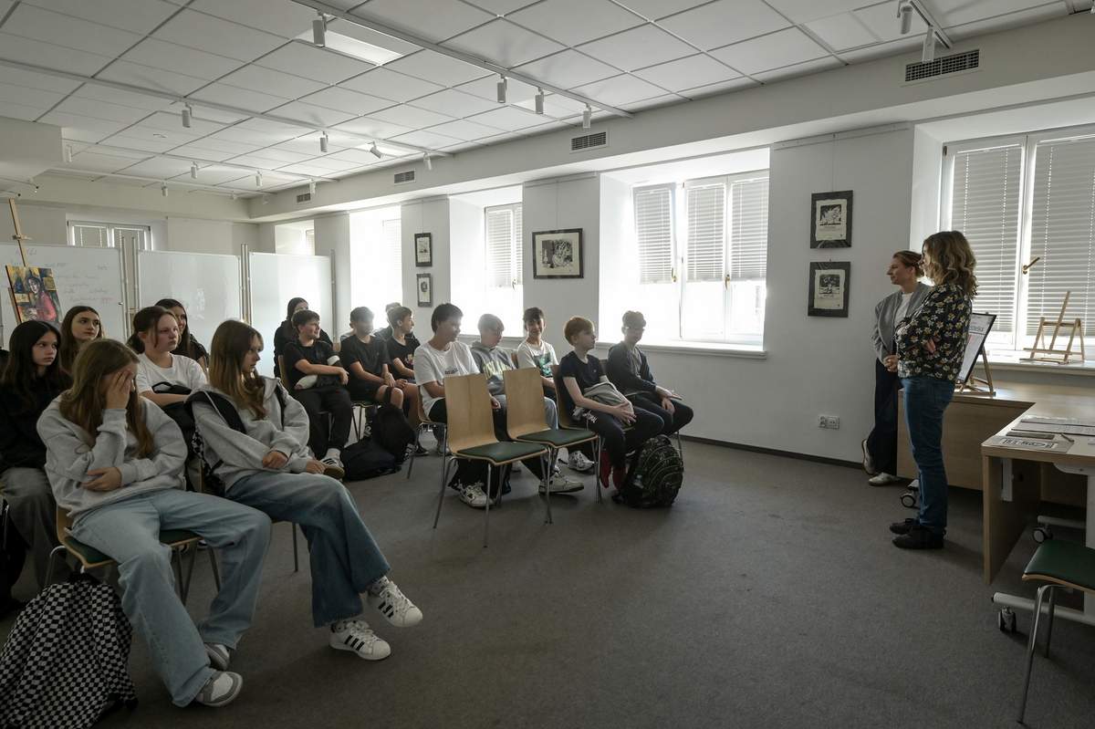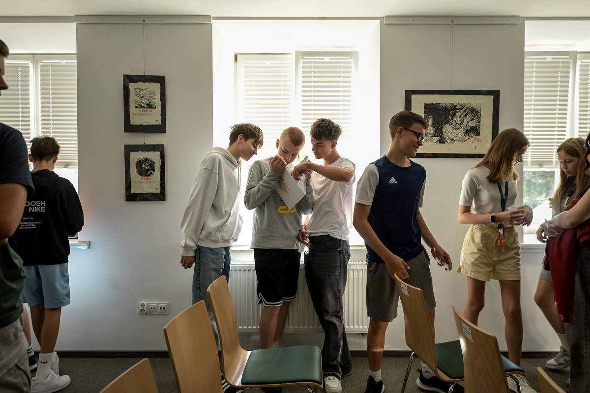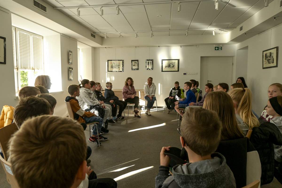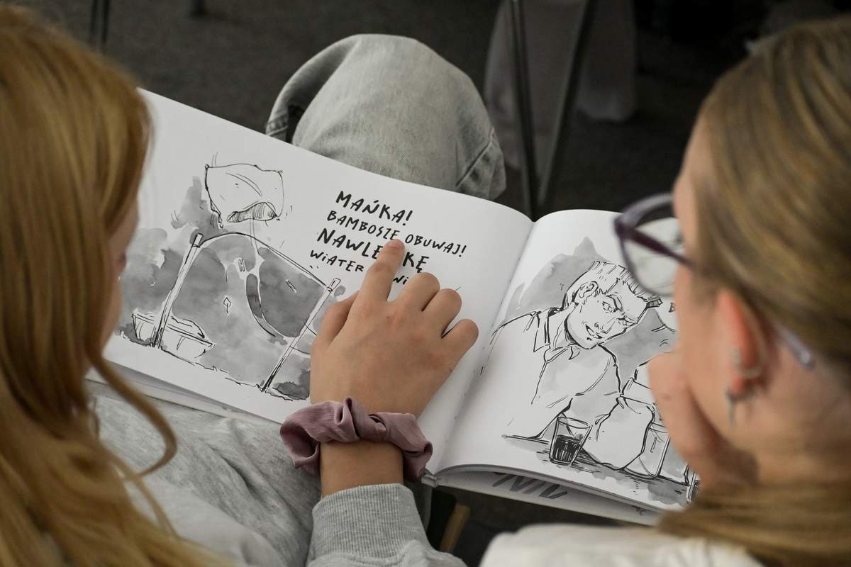 Na wystawę zaproszona została młodzież wraz z wychowawcami, żeby wspólnie obejrzeć linoryty Magdaleny Sadowskiej, na których autorka z humorem zmierzyła się z mową prostą, ale także żeby porozmawiać o języku dziadków i pradziadków.