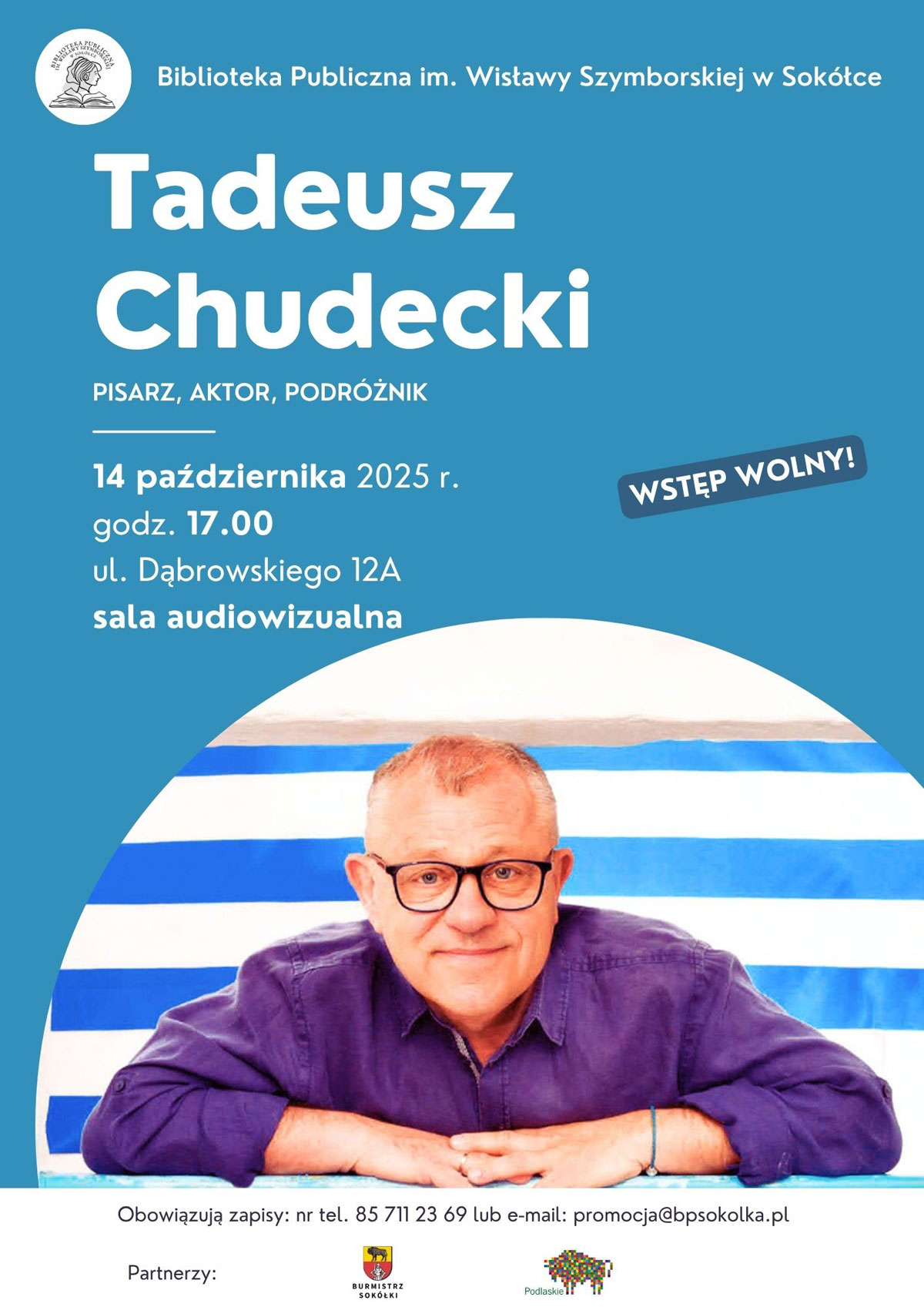 14 października 2025 r. w Bibliotece Publicznej im. Wisławy Szymborskiej w Sokółce odbędzie się spotkanie z Tadeuszem Chudeckim – pisarzem, aktorem i podróżnikiem.