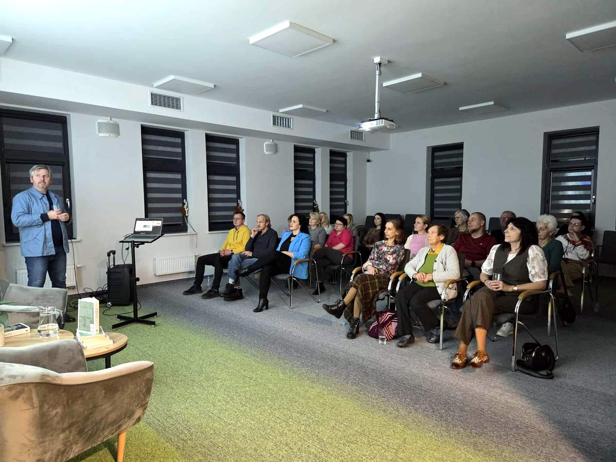 Już odbyło się pierwsze spotkanie z tego cyklu – wykład dr Pawła Średzińskiego na temat „Jak zatrzymać wodę wokół domu i w gospodarstwie?”. Prelegent jest miłośnikiem przyrody, znanym w regionie dzięki książkom: „Rzeki. Opowieść z Mezopotamii, krainy między Biebrzą i Narwią leżącej” oraz trylogii „Puszcza Knyszyńska. Opowieść o lesunach, zwierzętach i królewskim lesie, a także o tajemnicach w głębi lasu skrywanych” (III tom znajduje się już w przedsprzedaży).