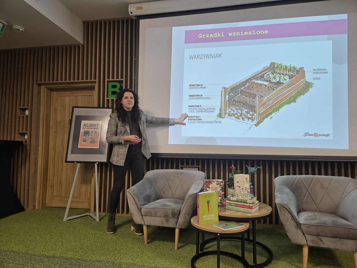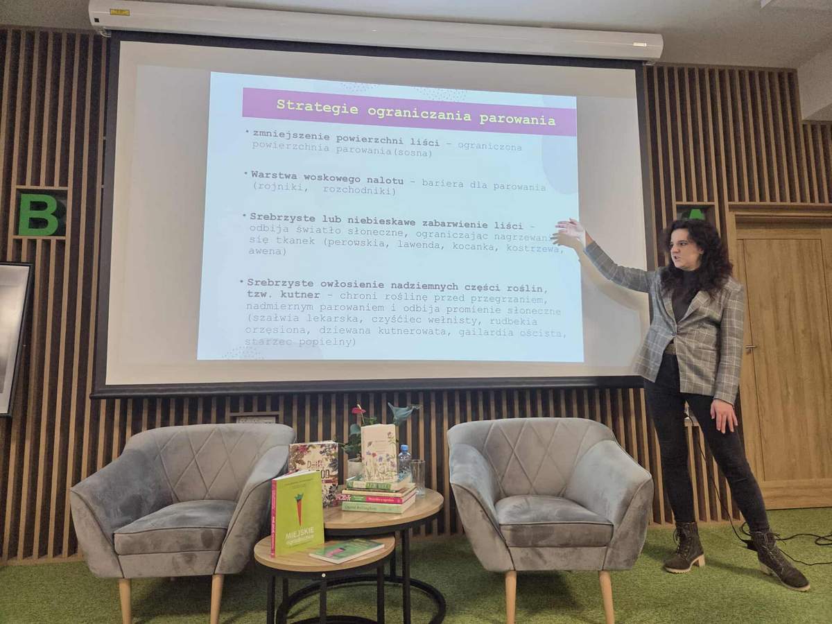 Prelegentka omówiła również zalety ogrodów permakulturowych, czyli zrównoważonych ekosystemów naśladujących naturalne procesy, które ograniczają ingerencję człowieka, stawiając na samoregulację i współpracę z naturą. Wśród kluczowych zasad wymieniła m.in. unikanie przekopywania ziemi, zwiększanie bioróżnorodności oraz wykorzystywanie naturalnych zasobów, takich jak woda deszczowa czy organiczne nawozy.