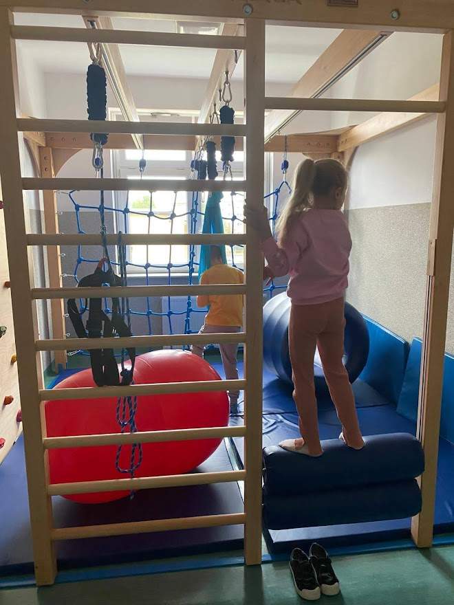 Sala została wyposażona w specjalistyczny sprzęt, taki jak: huśtawki terapeutyczne, podwieszane platformy, równoważnie, ścieżki sensoryczne, piłki rehabilitacyjne oraz zestawy do stymulacji dotykowej, wzrokowej, słuchowej i ruchowej. Dzięki temu nauczyciel – terapeuta integracji sensorycznej może prowadzić różnorodne zajęcia dostosowane do indywidualnych potrzeb uczniów, wspierając ich motorykę, koordynację, koncentrację oraz umiejętność radzenia sobie z nadmiarem bodźców. Nowa przestrzeń będzie wykorzystywana podczas zajęć terapeutycznych wspierających rozwój emocjonalny, stając się jednocześnie miejscem sprzyjającym relaksacji i wyciszeniu.