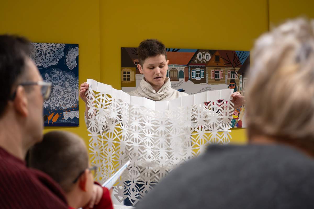 W sobotnie popołudnie, 24 stycznia 2026 roku, odbyły się w Muzeum Ziemi Sokólskiej SOK zajęcia poświęcone wycinance ludowej. Na warsztatach uczestnicy, rodziny z dziećmi oraz dorośli, uczyli się tworzyć firanki z papieru. Prowadząca – Anna Olesiuk-Sawicka – twórczyni ludowa związana z tradycjami rękodzielniczymi okolic Bielska Podlaskiego, opowiedziała o technice, formie i znaczeniu wycinanych firanek.