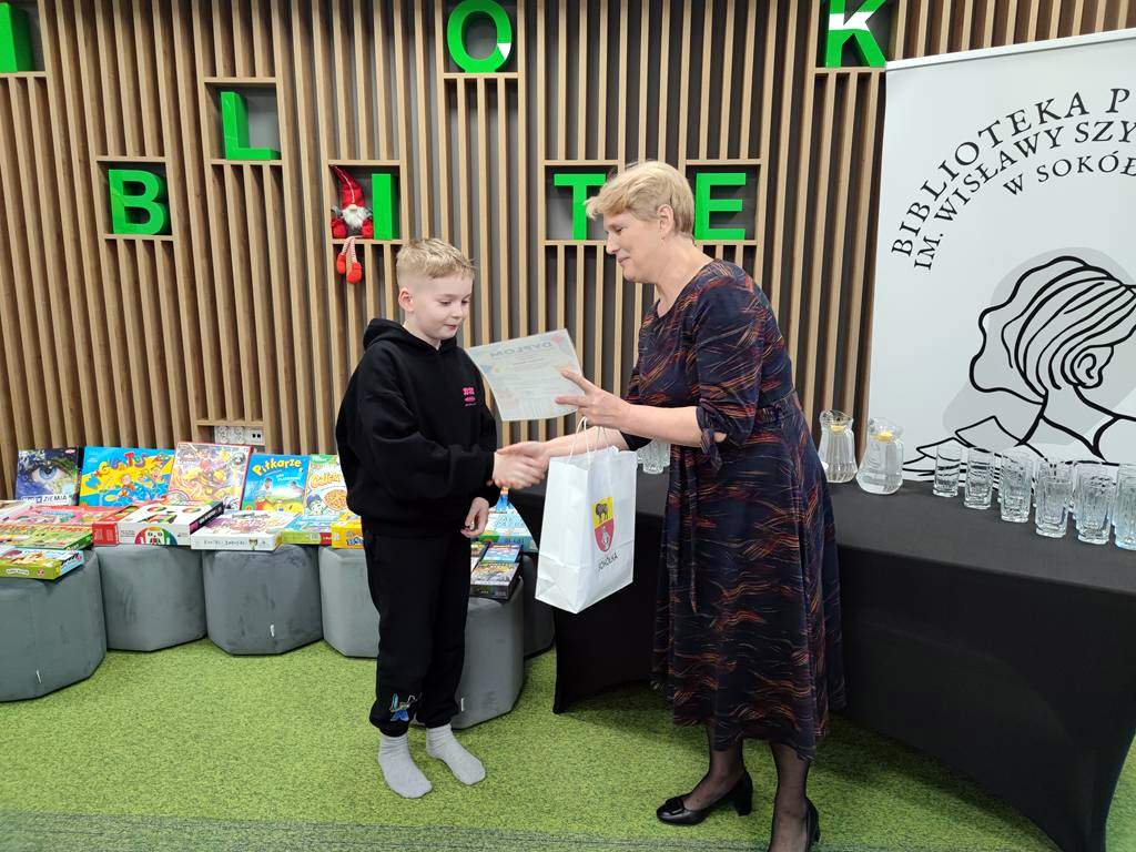 21 stycznia odbyło się spotkanie pod hasłem: „Wyczytane-rozegrane, czyli popołudnie z planszówkami w bibliotece”. Oprócz emocji związanych z rozgrywaniem, pojawiły się też te, związane ze szczególnym wyróżnieniem, gdyż w tym dniu wydarzenie rozpoczęło się od uroczystego wręczenia nagród dla najaktywniejszych czytelników, czyli tych, którzy w roku 2025 przeczytali najwięcej książek.