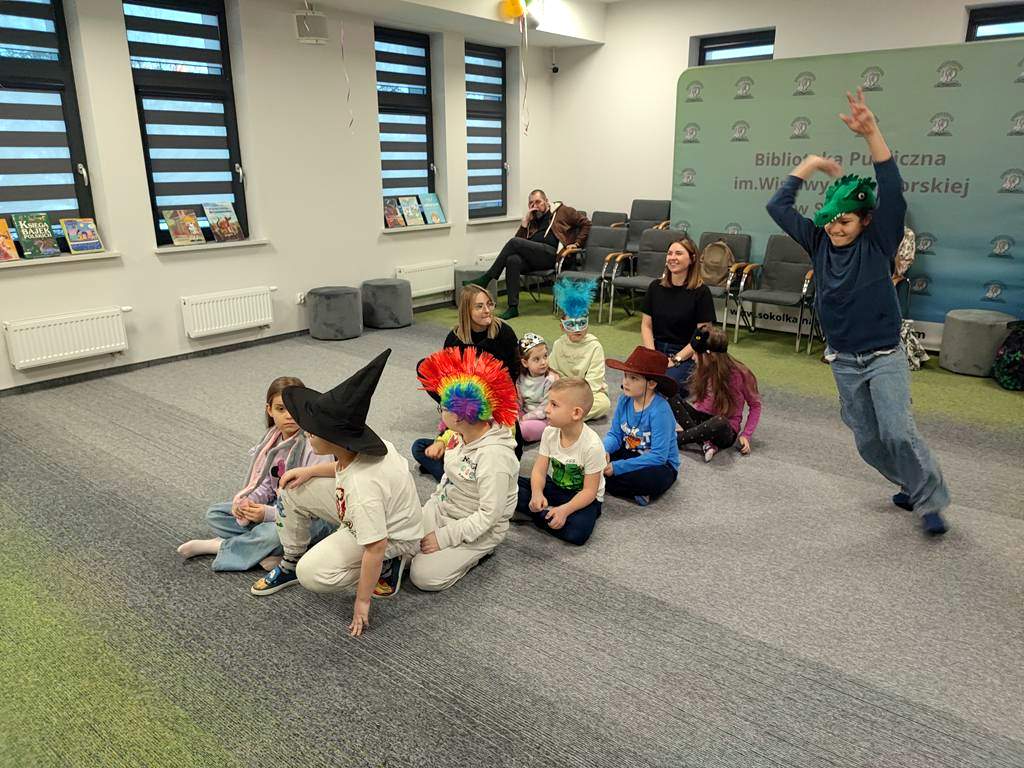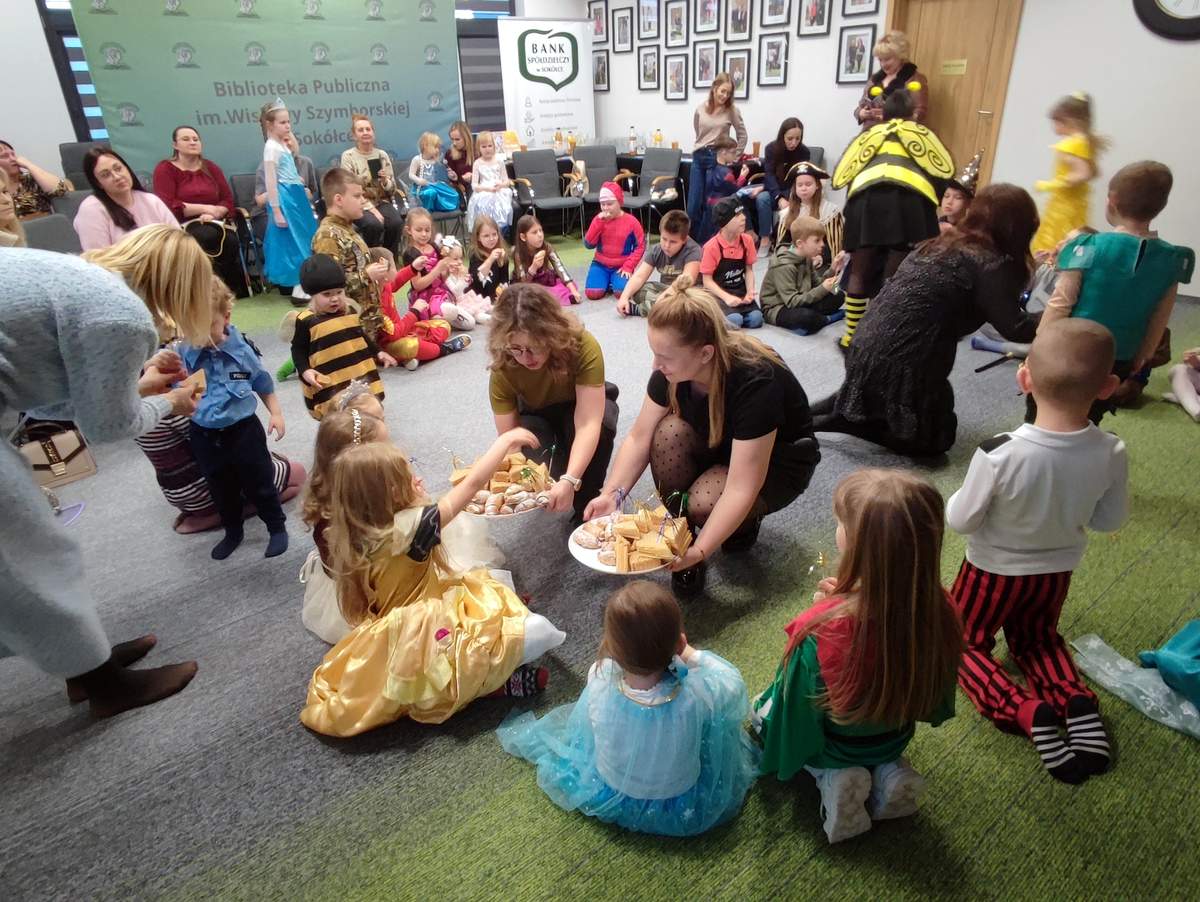 Koniec ferii w Bibliotece nigdy nie wiąże się ze smutnym pożegnaniem. Tym razem na balu karnawałowym „Jak z książki”, bibliotekarki pragnęły wszystkim pokazać, że przyjaźń z biblioteką i czytaniem to zabawa na każdy dzień życia. Wszystkie zabawy inspirowały książki, była więc lokomotywa, Pchła Szachrajka, królewny i rycerze oraz maskotki biblioteczne, czyli bohaterowie książek chętnie czytanych w naszej bibliotece. Zmęczeni licznymi podróżami oraz konkursami, goście zostali uraczeni karnawałowymi pysznościami, które tak ich wzmocniły, że dalsza podróż ku baśniowej zabawie trwała i trwała…