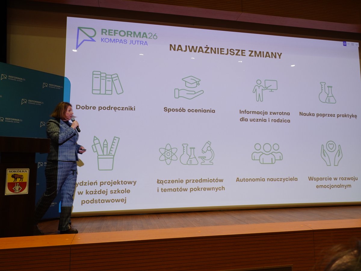 Uczestnicy konferencji w Sokółce rozmawiali o kluczowych elementach reformy Reforma26 „Kompas Jutra”, która według MEN ma fundamentalnie przeobrazić polski system oświaty. Główne idee reformy obejmują:
