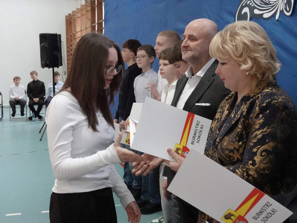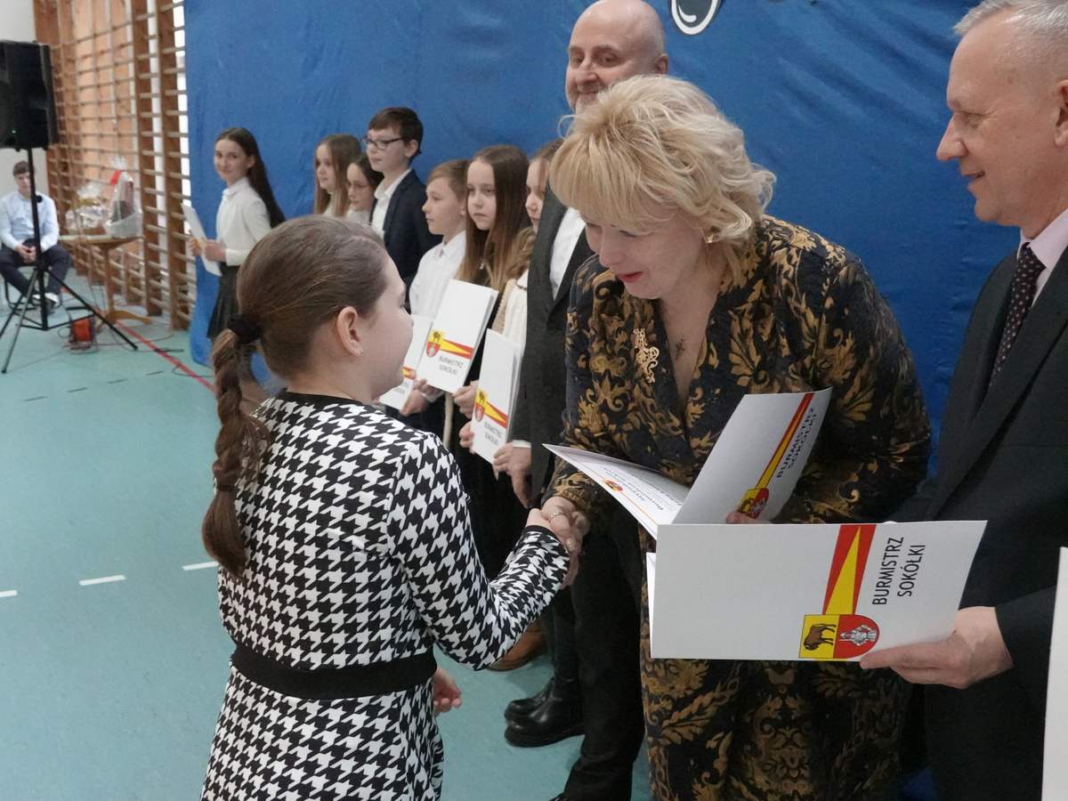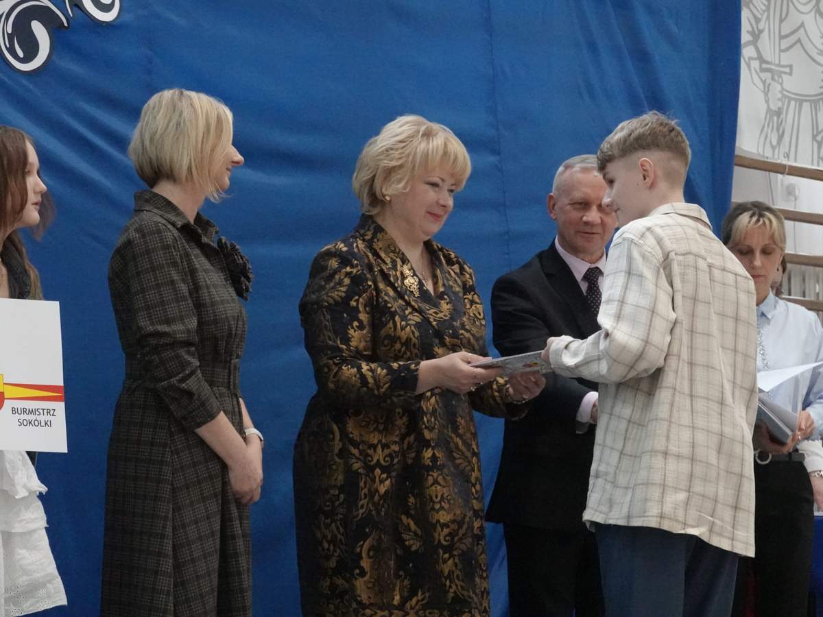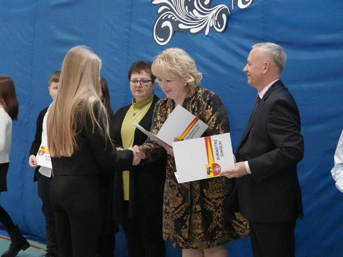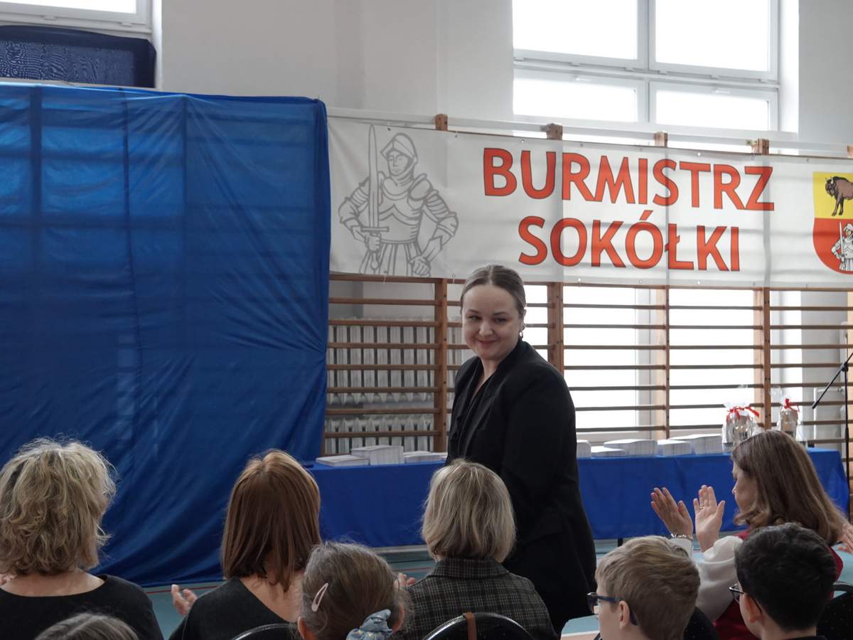 Podczas uroczystości Burmistrz Sokółki Ewa Kulikowska pogratulowała uczniom wysokich wyników oraz podziękowała rodzicom i nauczycielom za wsparcie, jakie okazują młodym ludziom w rozwijaniu ich talentów. W swoim wystąpieniu podkreśliła, że inwestycja w edukację jest jedną z najważniejszych inwestycji w przyszłość gminy Sokółka.