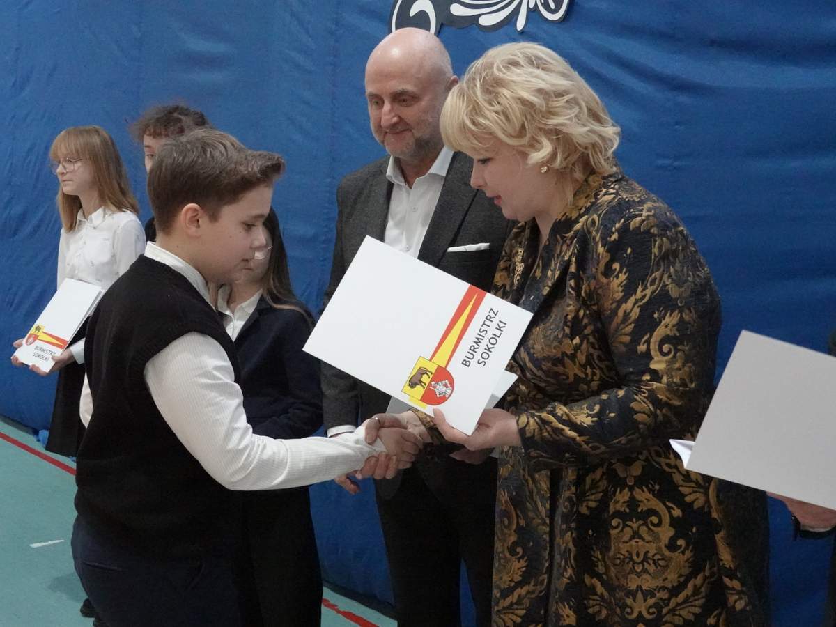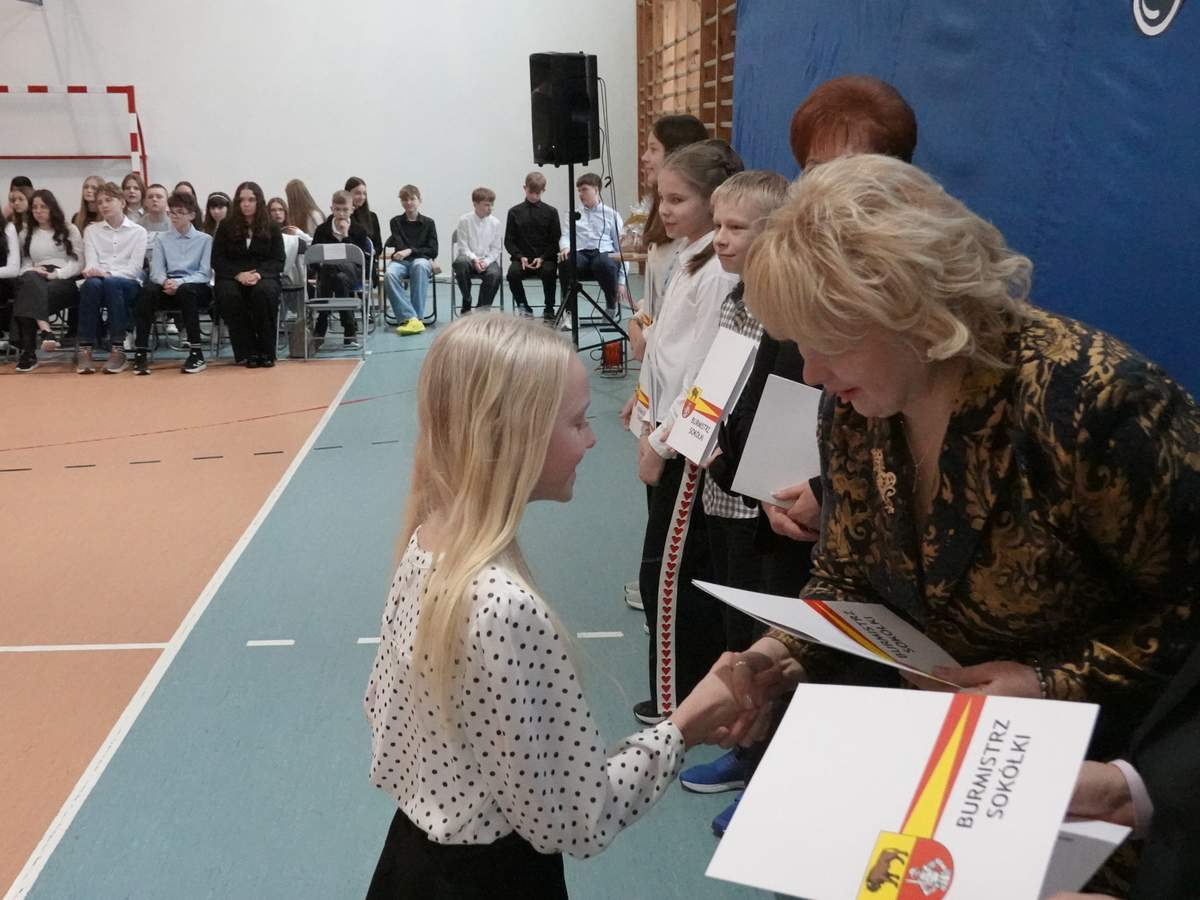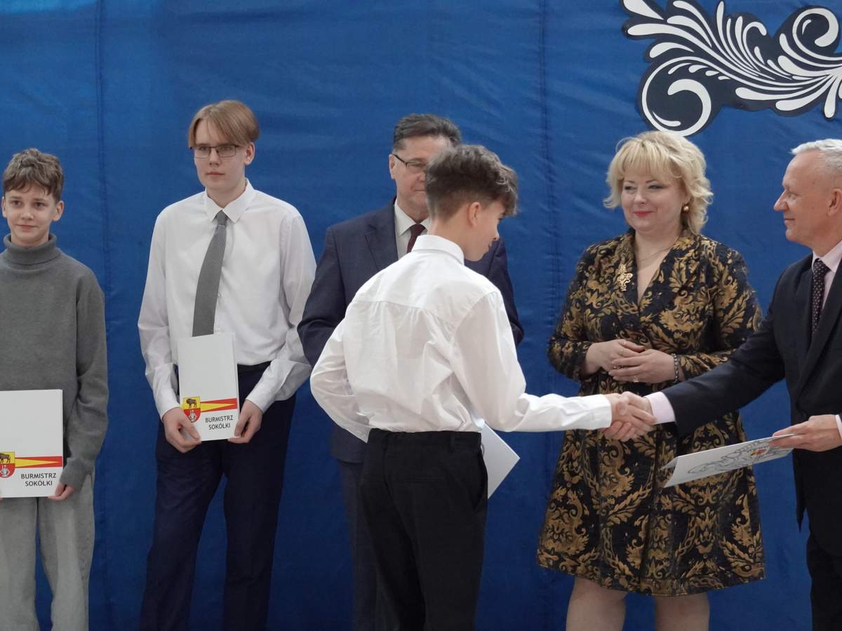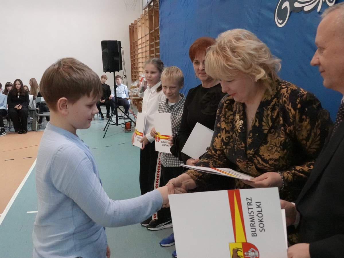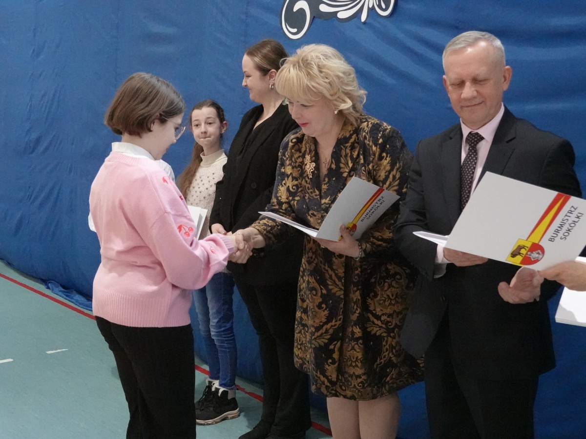 Podczas uroczystości Burmistrz Sokółki Ewa Kulikowska pogratulowała uczniom wysokich wyników oraz podziękowała rodzicom i nauczycielom za wsparcie, jakie okazują młodym ludziom w rozwijaniu ich talentów. W swoim wystąpieniu podkreśliła, że inwestycja w edukację jest jedną z najważniejszych inwestycji w przyszłość gminy Sokółka.