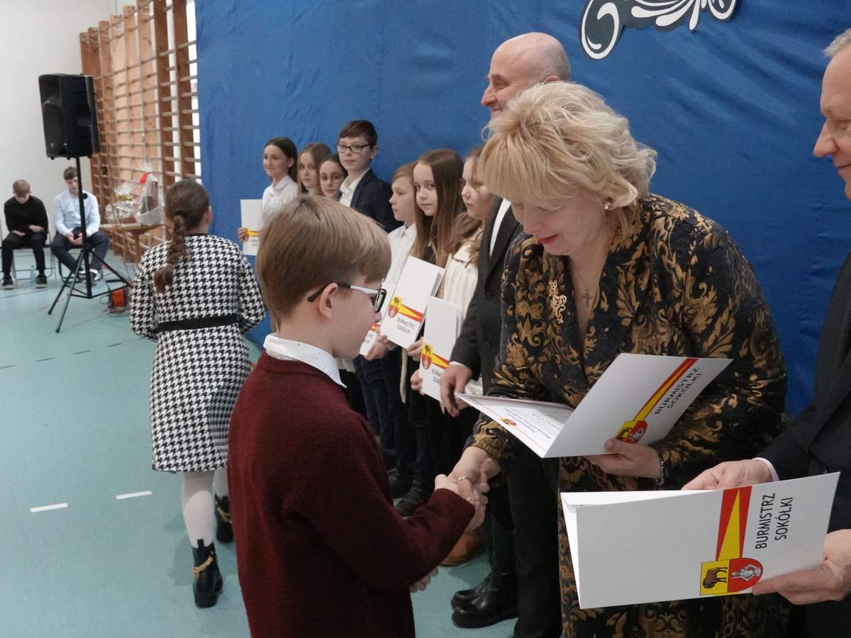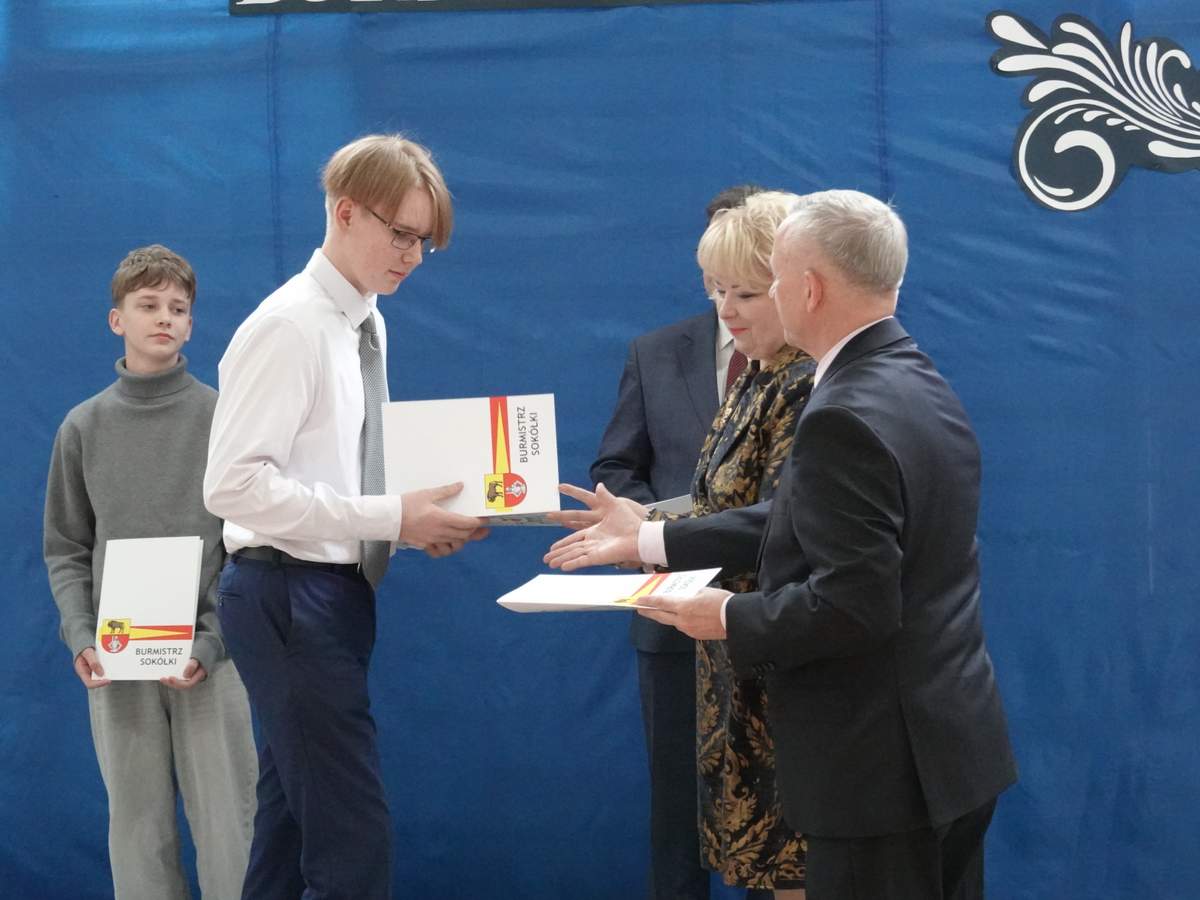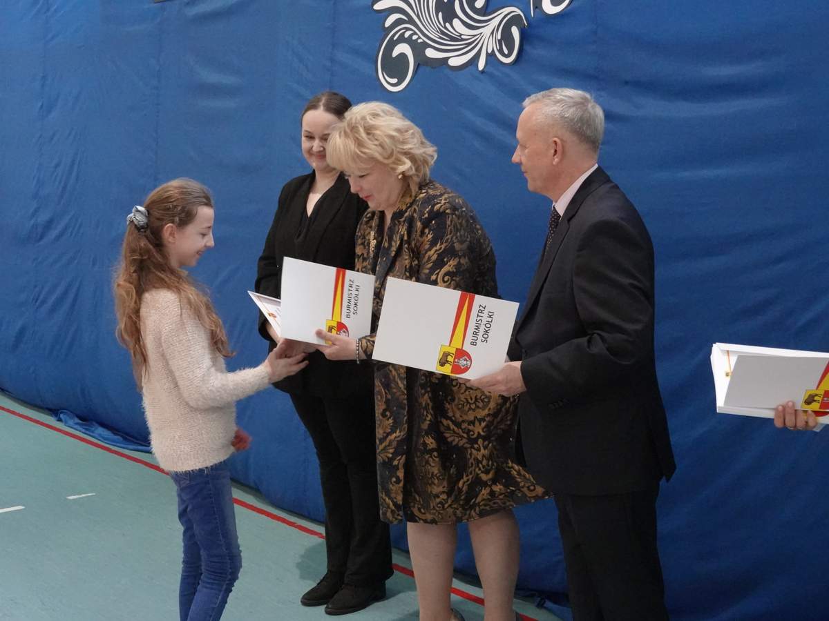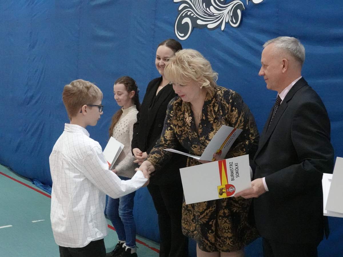 Podczas uroczystości Burmistrz Sokółki Ewa Kulikowska pogratulowała uczniom wysokich wyników oraz podziękowała rodzicom i nauczycielom za wsparcie, jakie okazują młodym ludziom w rozwijaniu ich talentów. W swoim wystąpieniu podkreśliła, że inwestycja w edukację jest jedną z najważniejszych inwestycji w przyszłość gminy Sokółka.