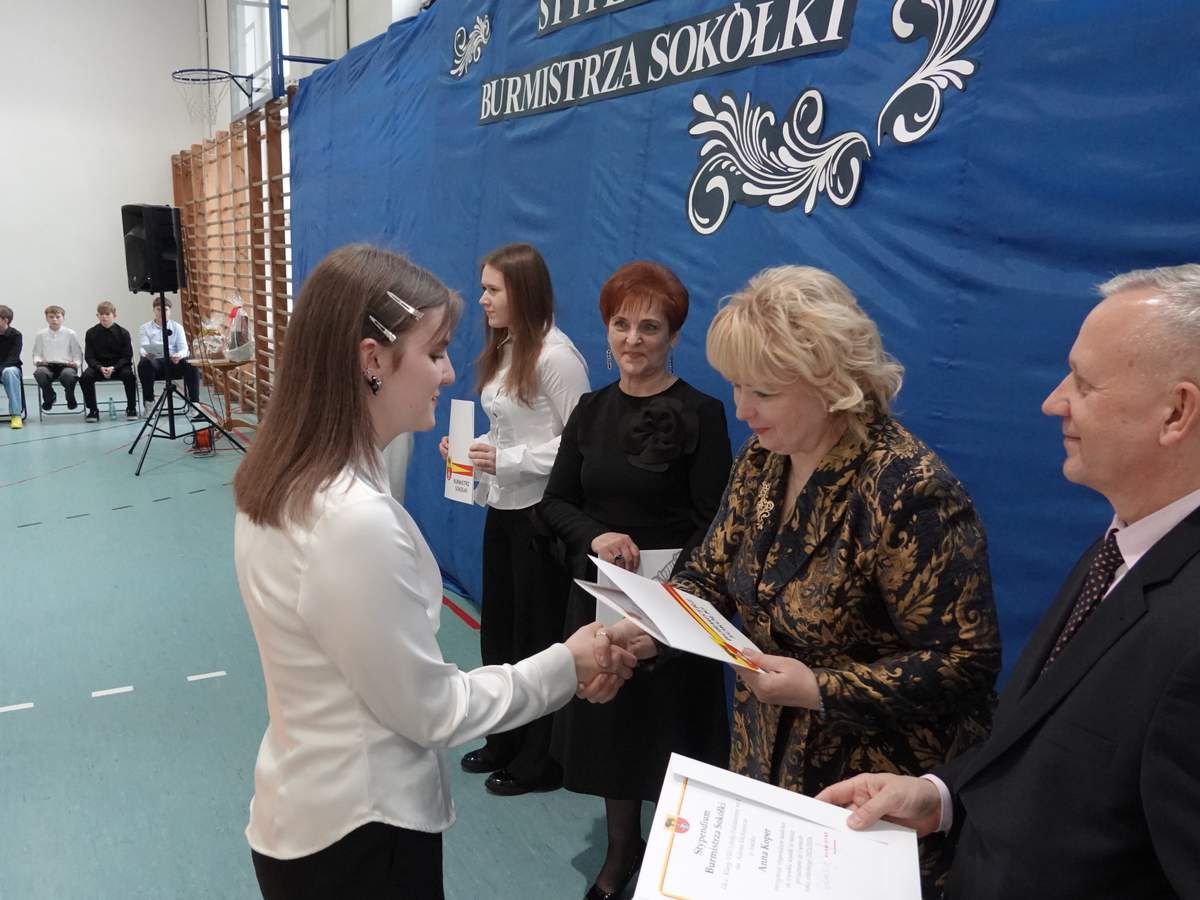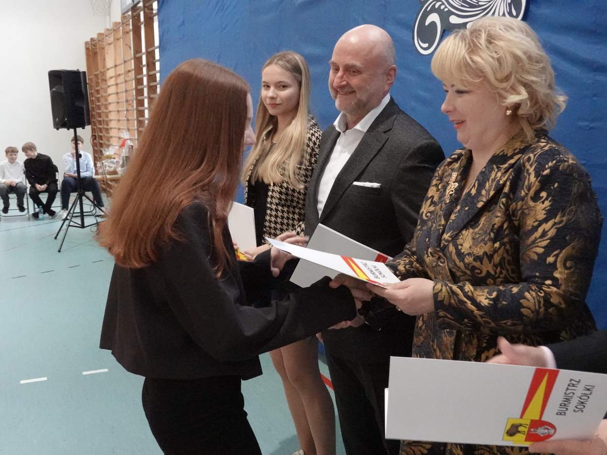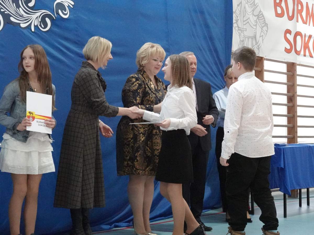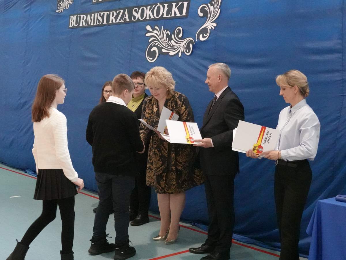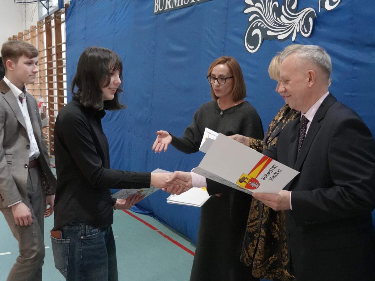 Podczas uroczystości Burmistrz Sokółki Ewa Kulikowska pogratulowała uczniom wysokich wyników oraz podziękowała rodzicom i nauczycielom za wsparcie, jakie okazują młodym ludziom w rozwijaniu ich talentów. W swoim wystąpieniu podkreśliła, że inwestycja w edukację jest jedną z najważniejszych inwestycji w przyszłość gminy Sokółka.