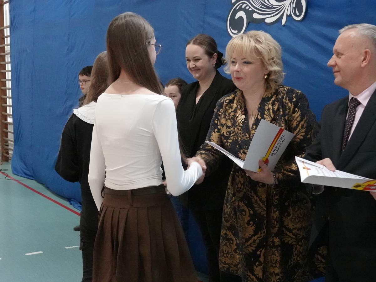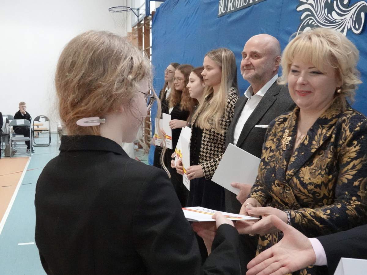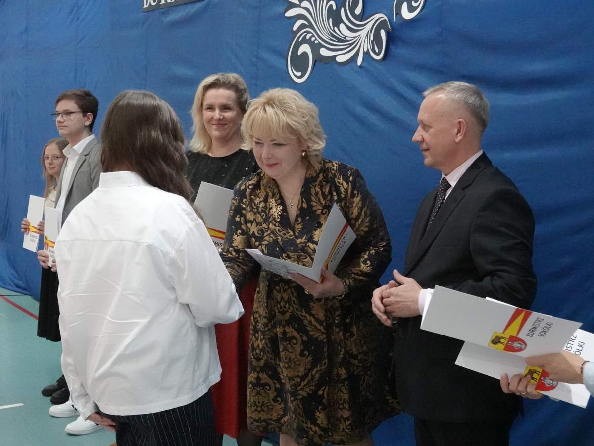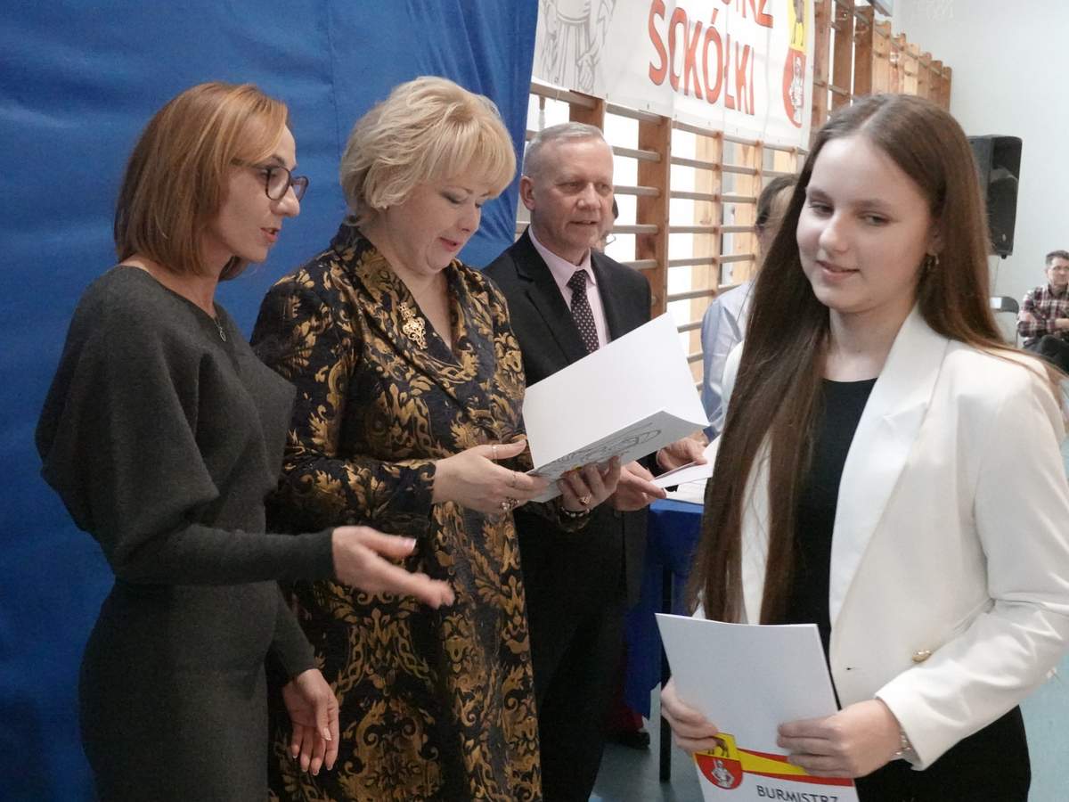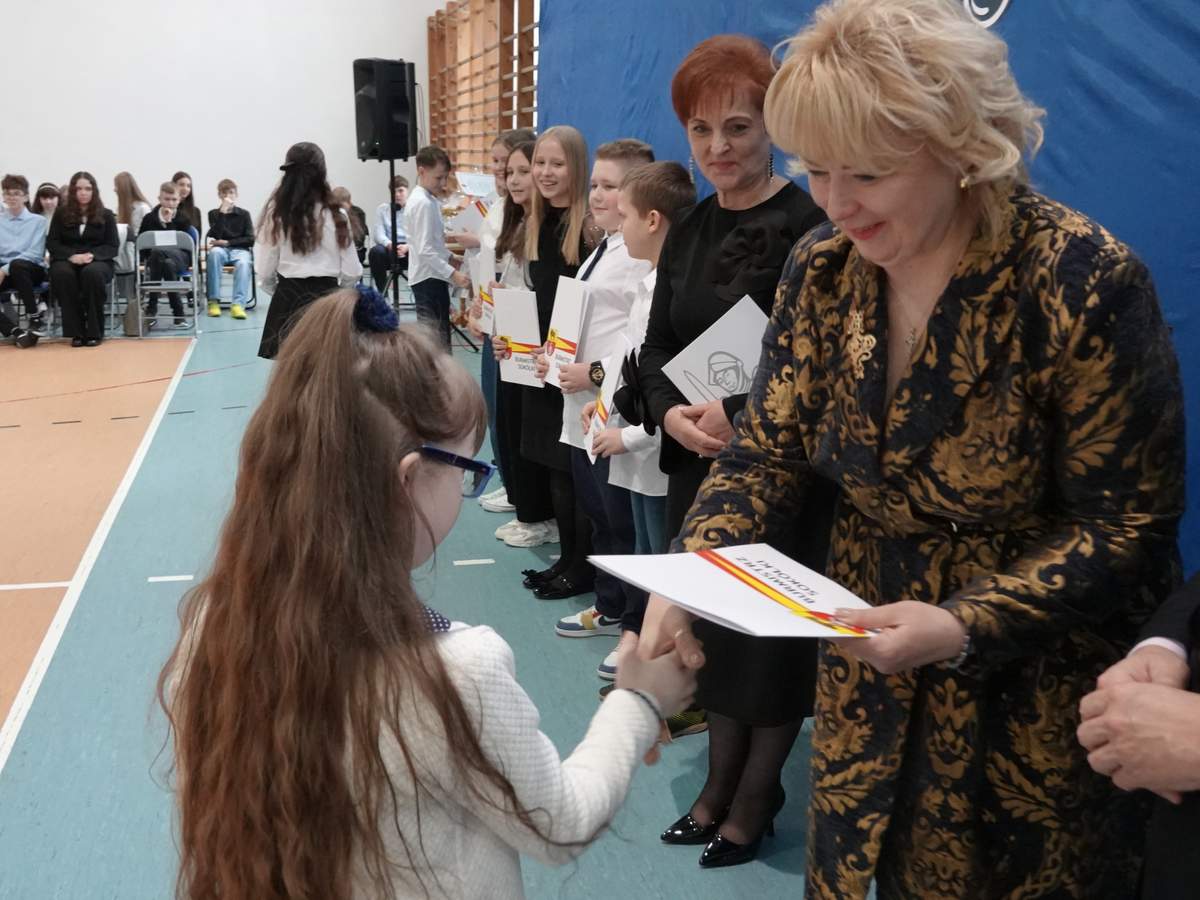 Podczas uroczystości Burmistrz Sokółki Ewa Kulikowska pogratulowała uczniom wysokich wyników oraz podziękowała rodzicom i nauczycielom za wsparcie, jakie okazują młodym ludziom w rozwijaniu ich talentów. W swoim wystąpieniu podkreśliła, że inwestycja w edukację jest jedną z najważniejszych inwestycji w przyszłość gminy Sokółka.