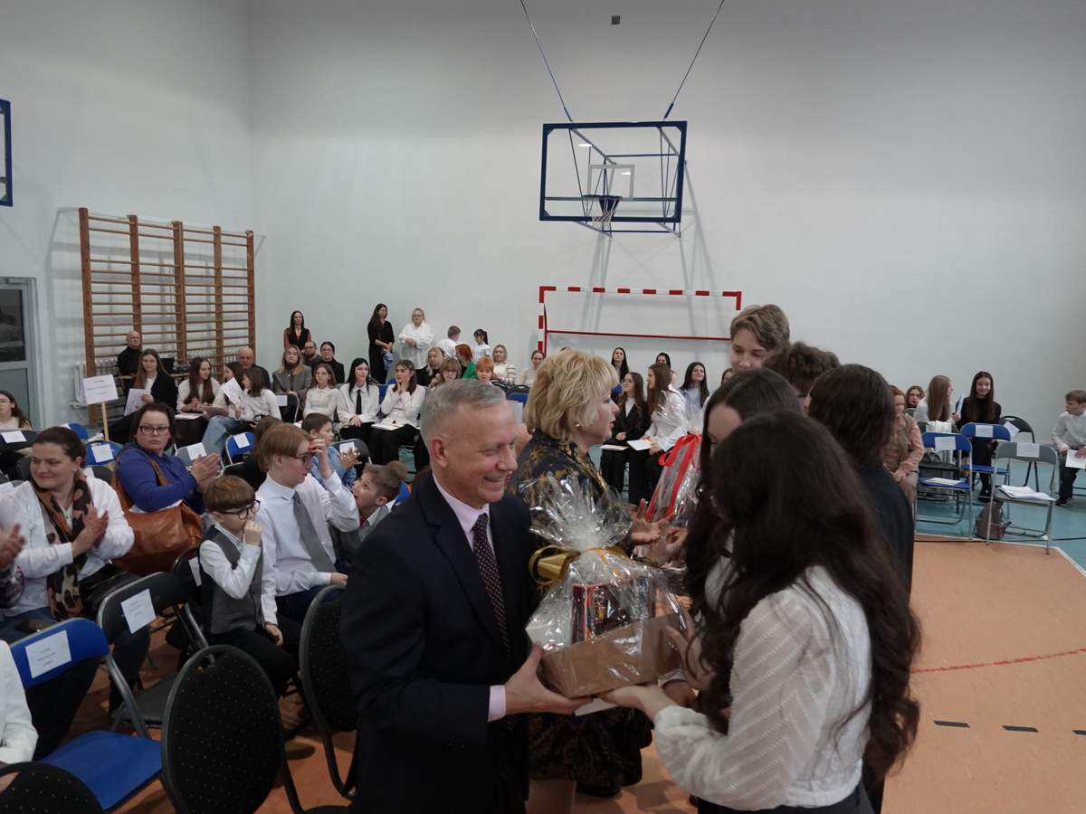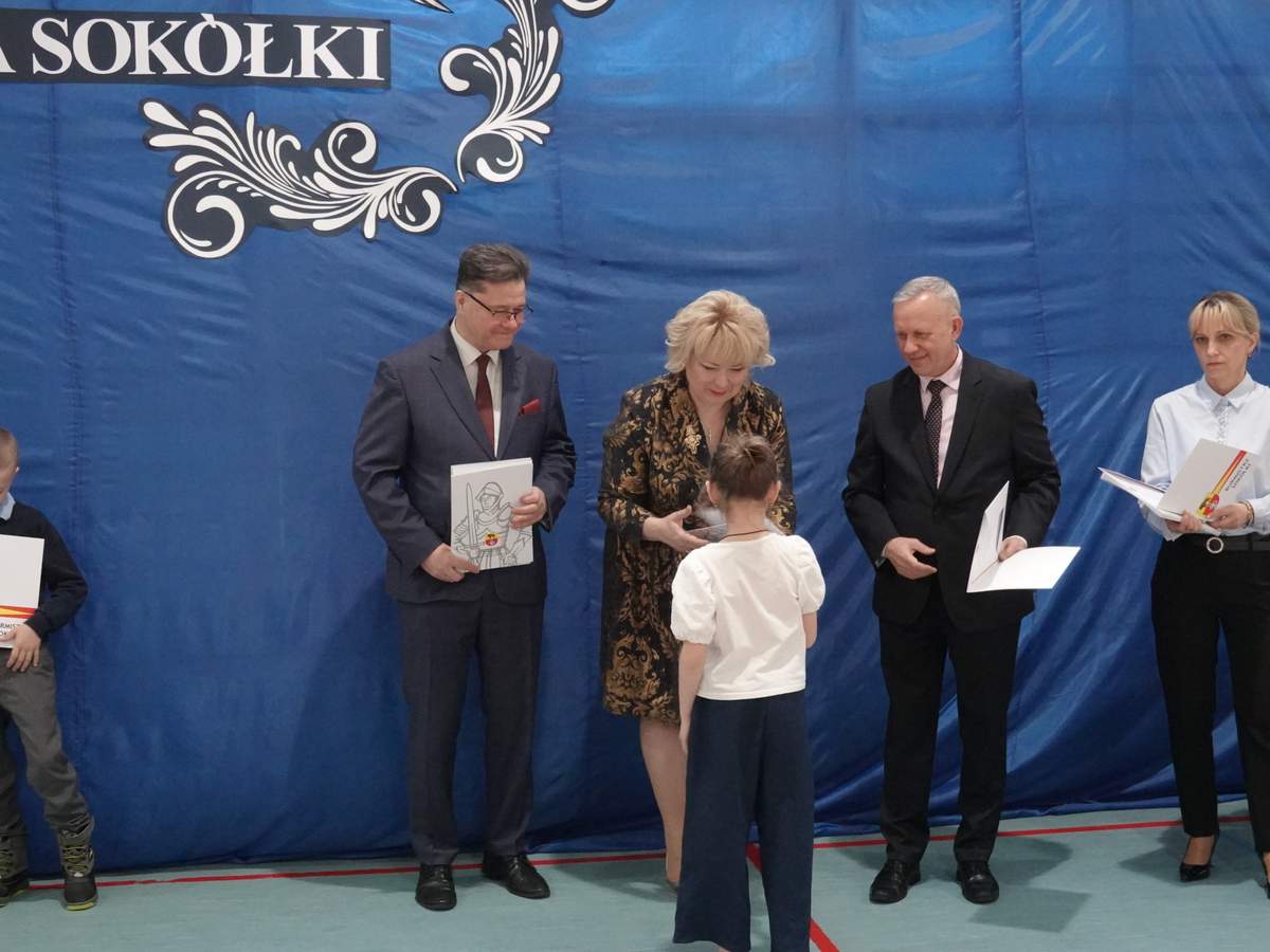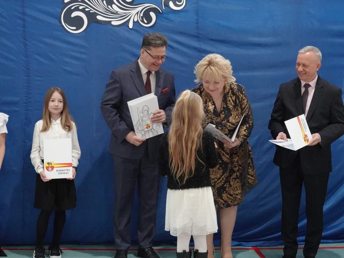 W uroczystości udział wzięli Burmistrz Sokółki Ewa Kulikowska, zastępca burmistrza Adam Kowalczuk, dyrektorzy szkół Joanna Zajczyk, Krzysztof Szczebiot, Katarzyna Chociej, Katarzyna Bancerek, Agnieszka Iłenda, Joanna Gejdel, kierownik Referatu oświaty Anna Żemajduk, inspektor Urszula Marchiel, nauczyciele oraz rodzice.