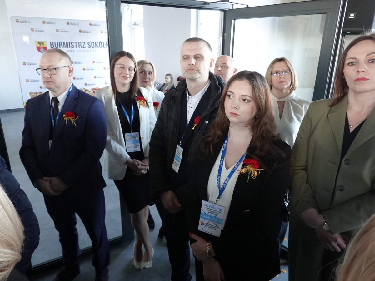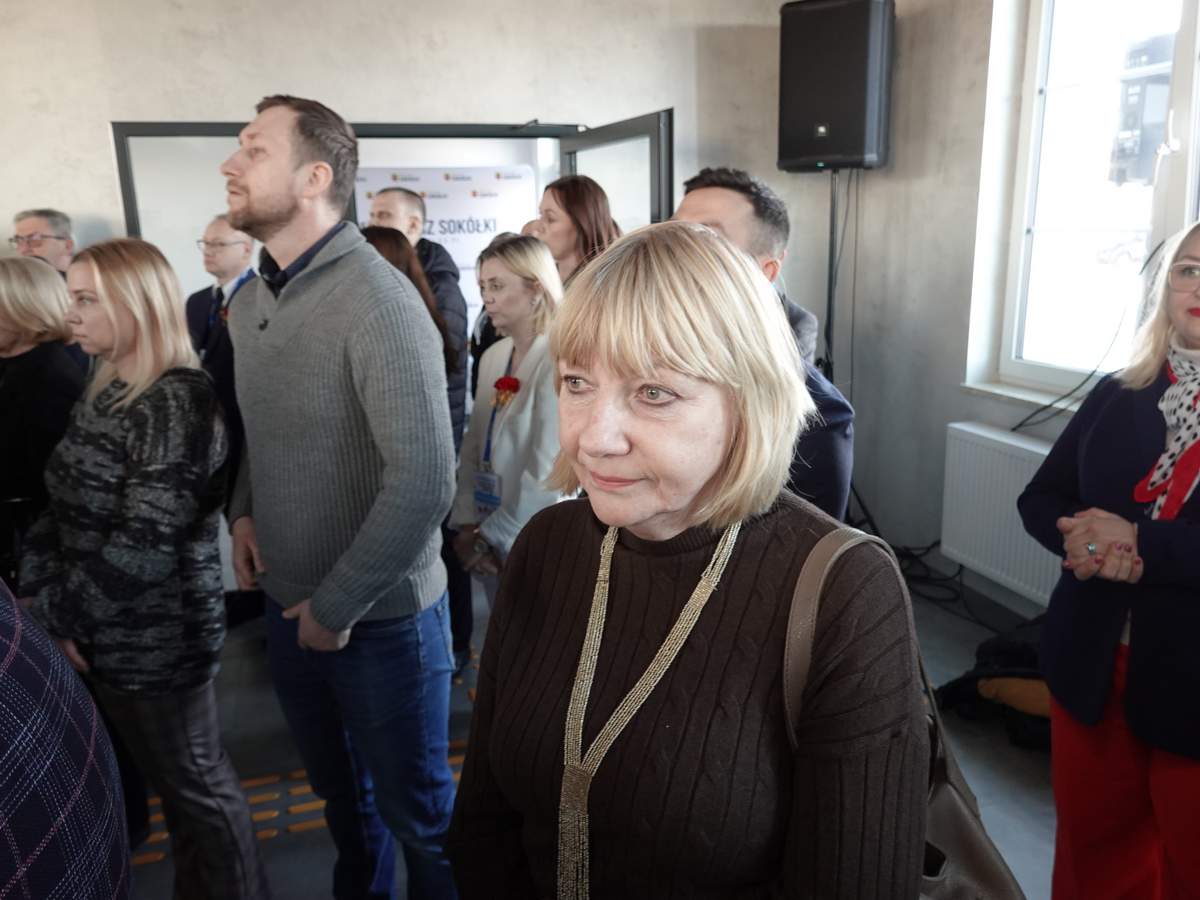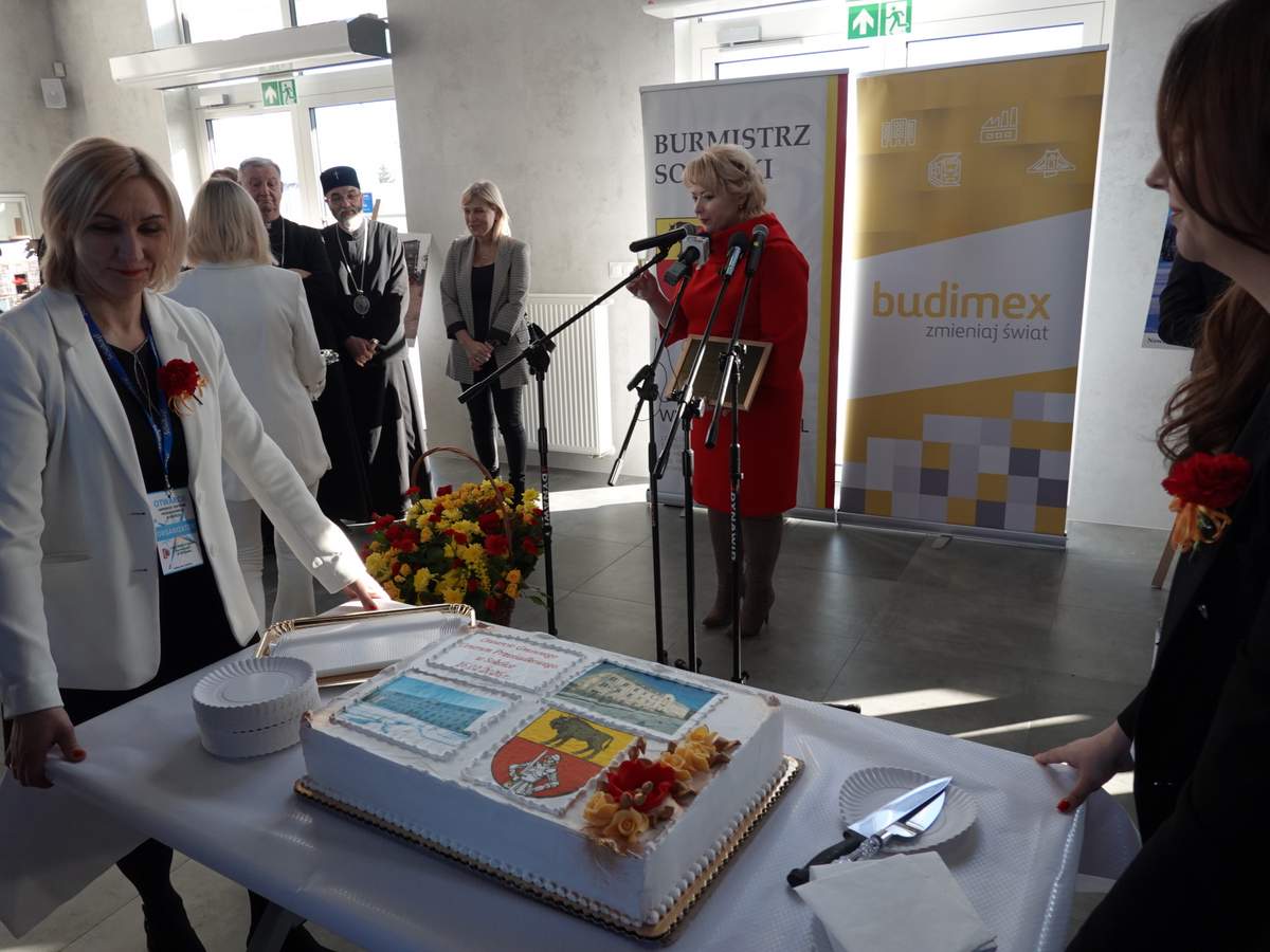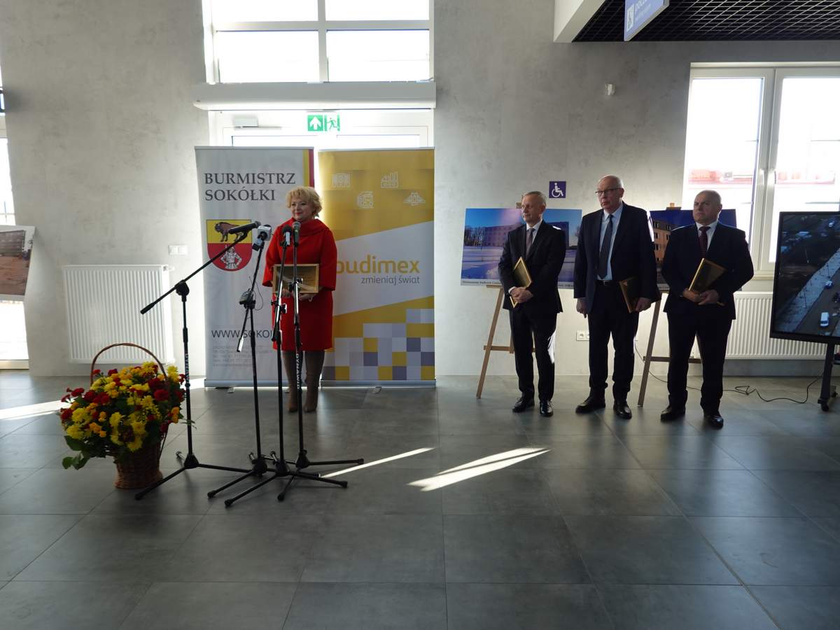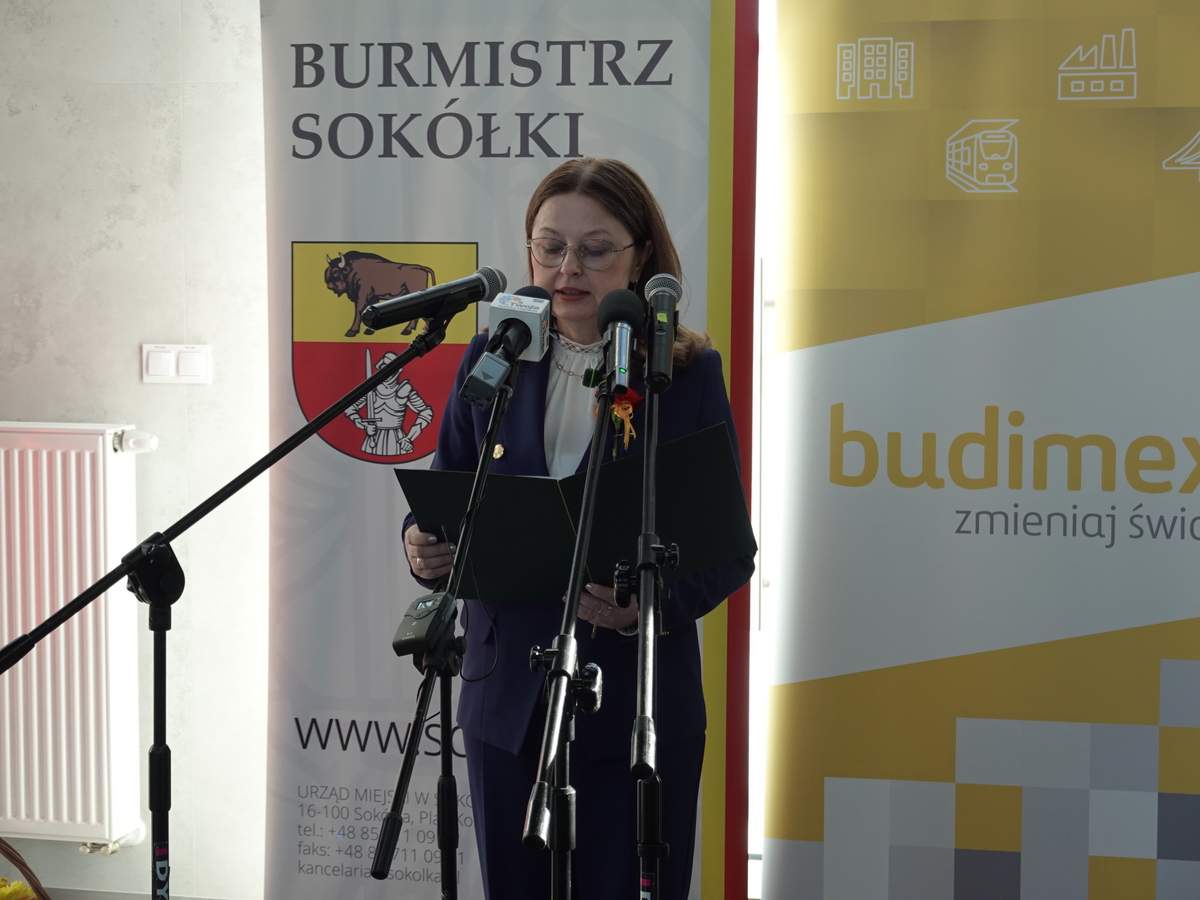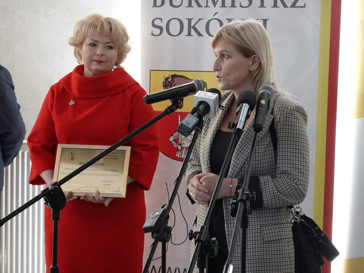 Po przecięciu wstęgi przed wejściem do budynku, uczestnicy uroczystości zgromadzili się w holu na parterze obiektu. Do zebranych zwróciła się Burmistrz Sokółki Ewa Kulikowska