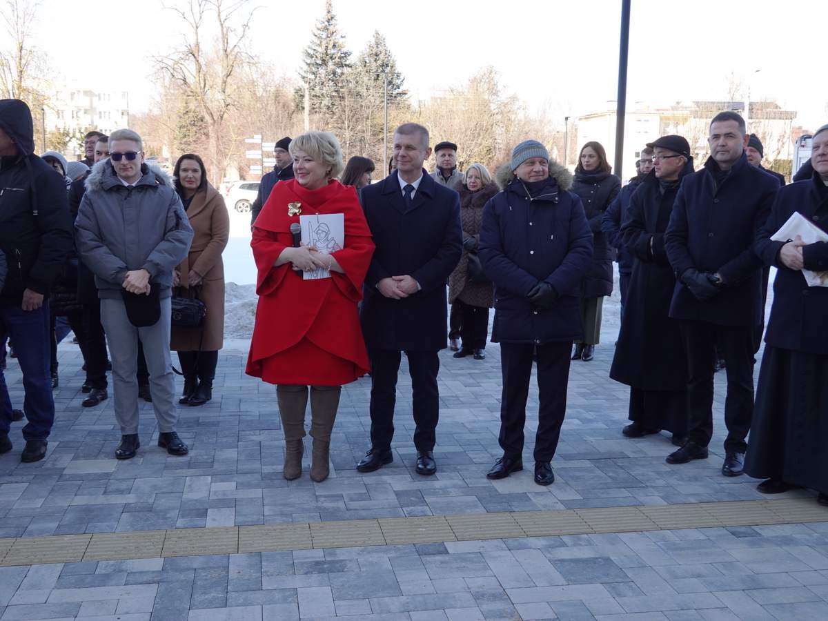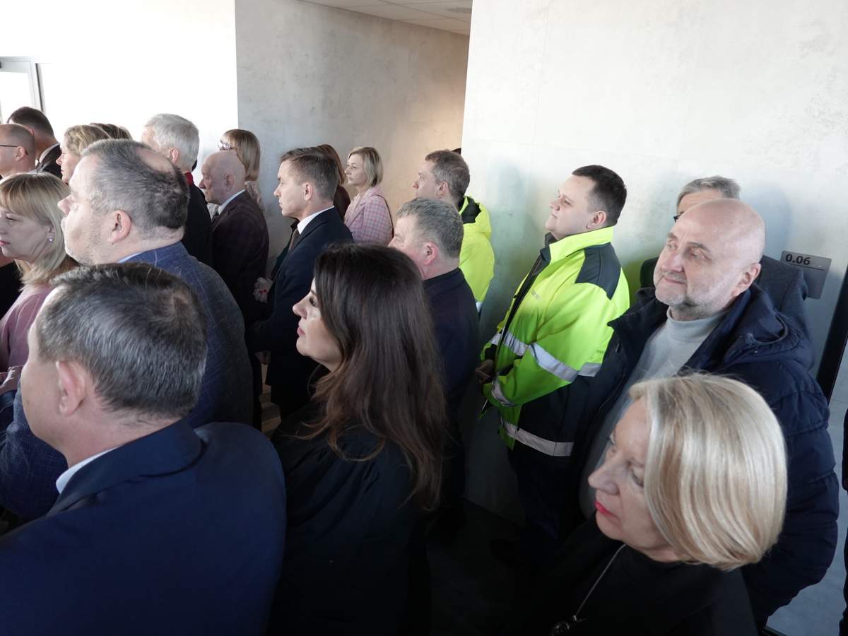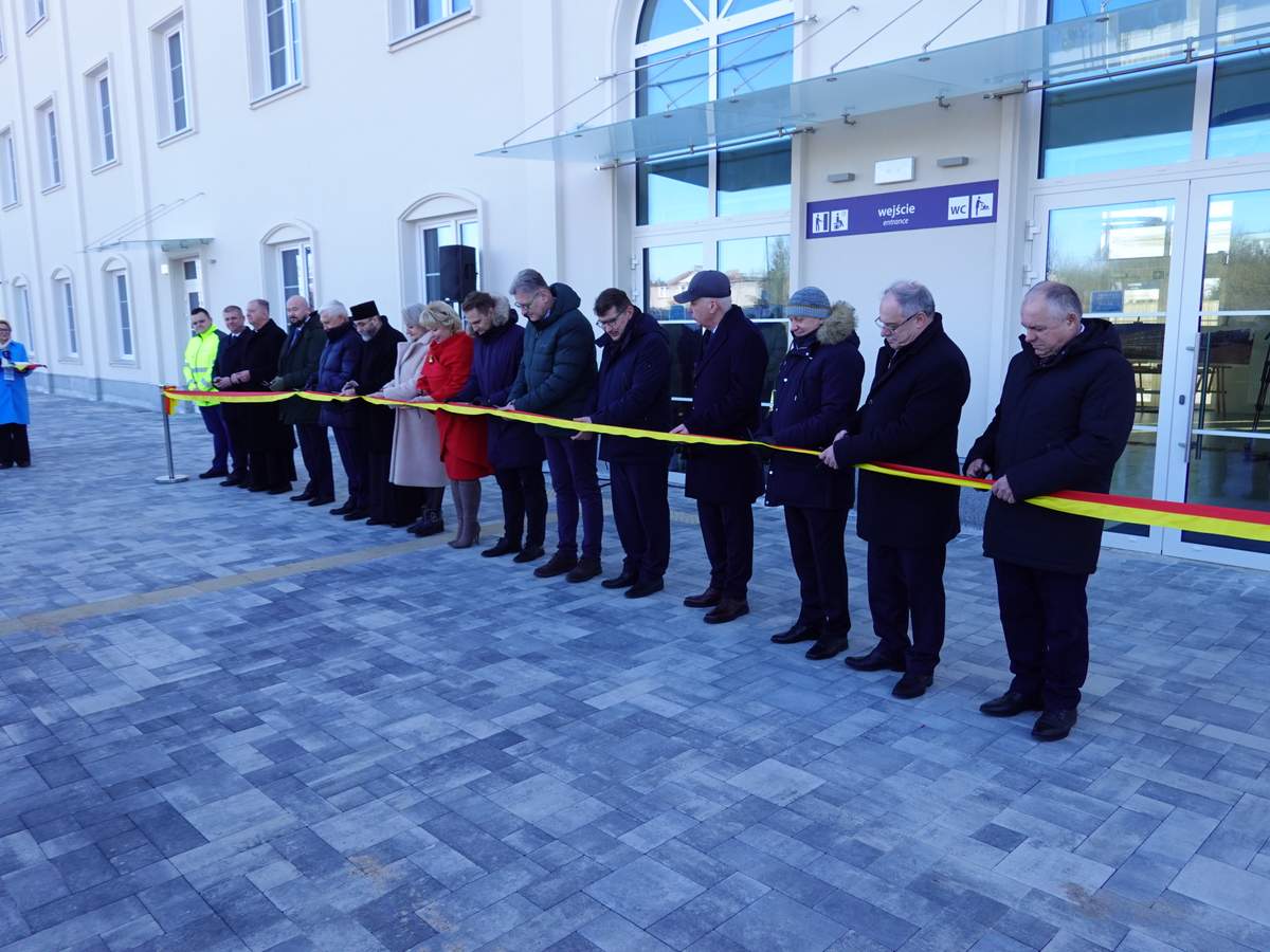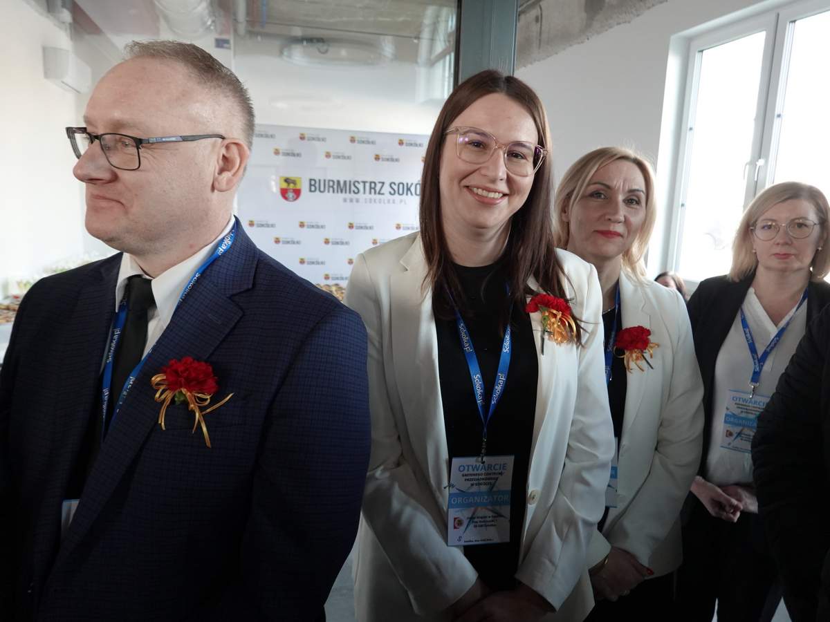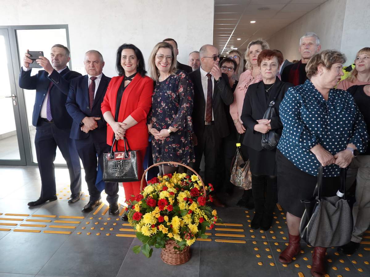 Po przecięciu wstęgi przed wejściem do budynku, uczestnicy uroczystości zgromadzili się w holu na parterze obiektu. Do zebranych zwróciła się Burmistrz Sokółki Ewa Kulikowska
