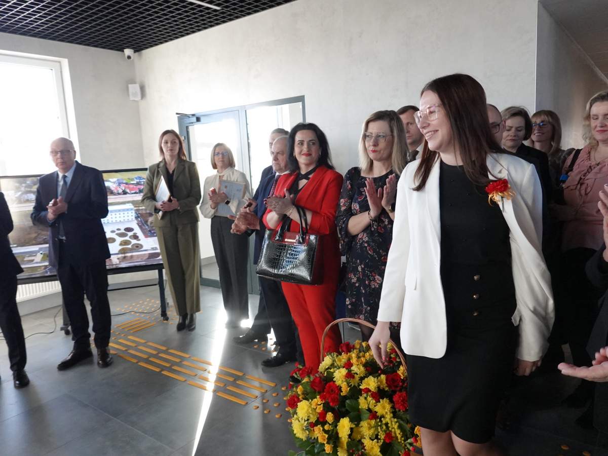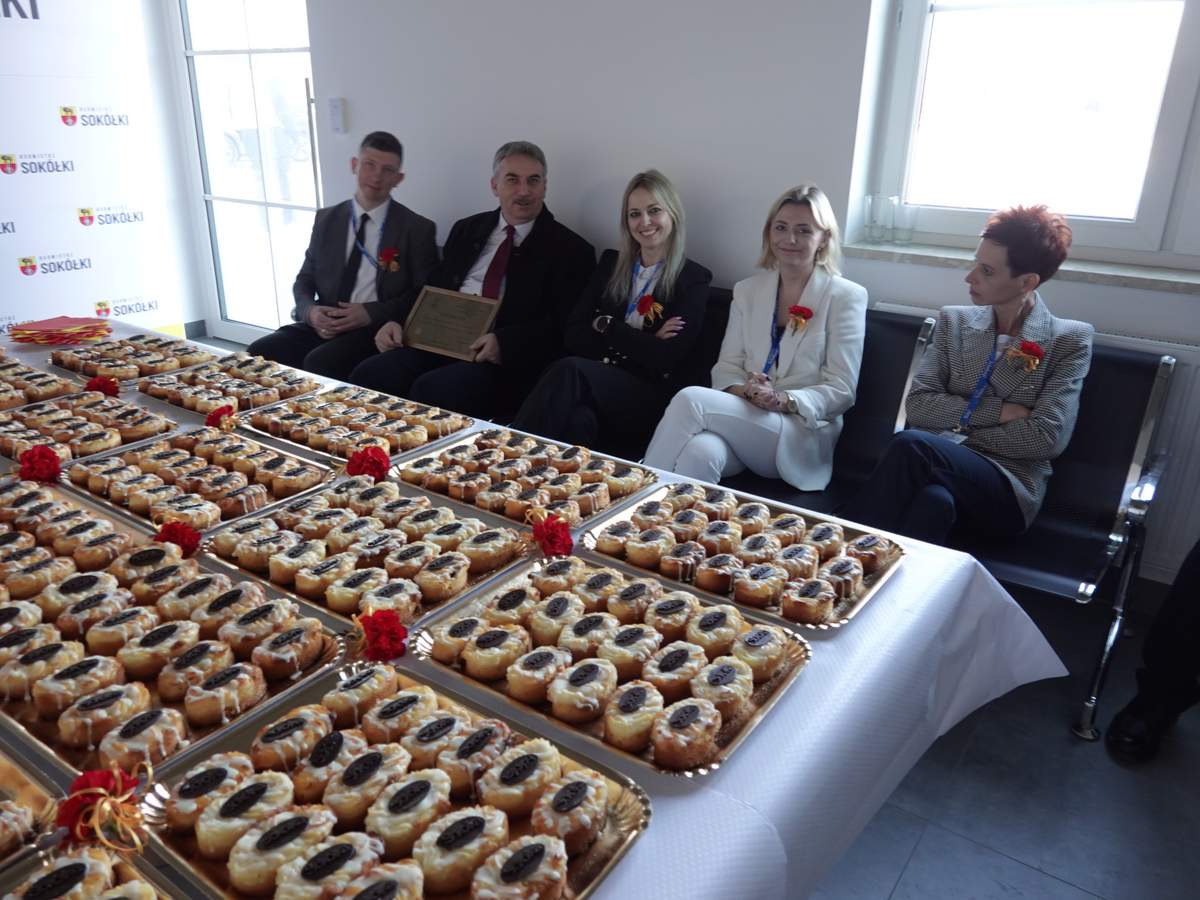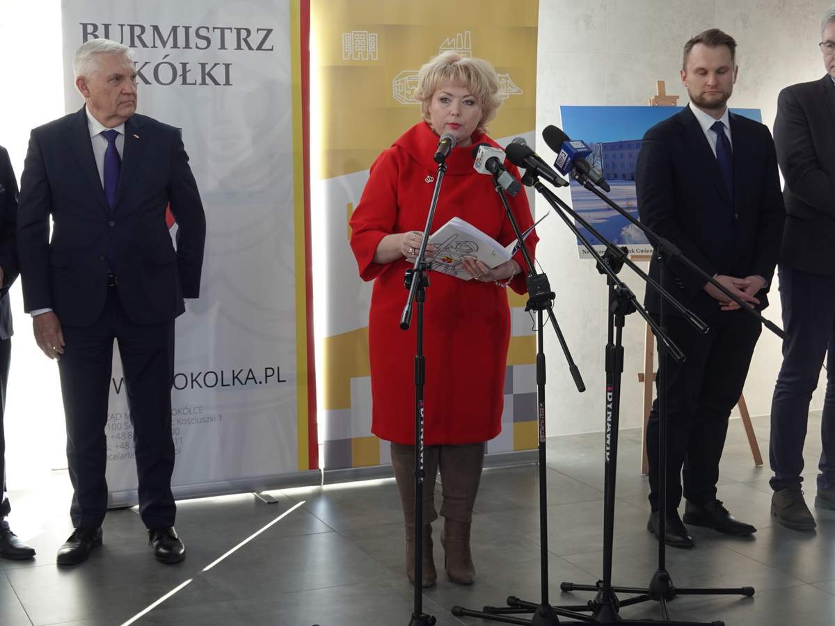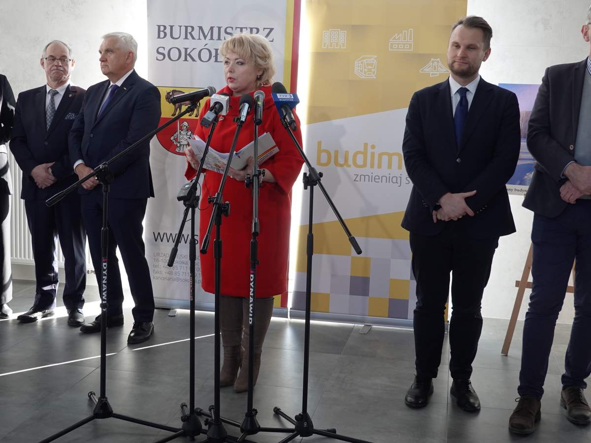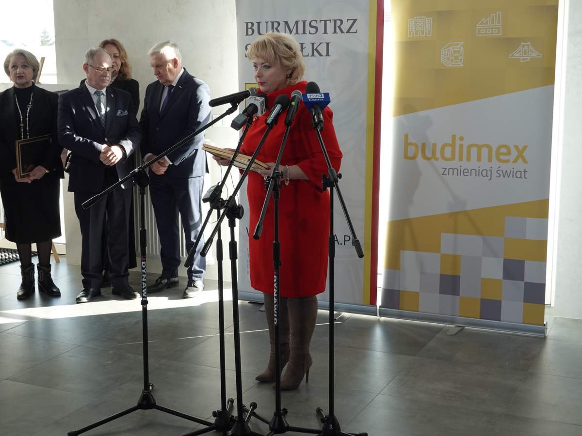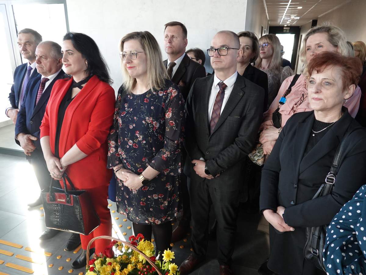 Po przecięciu wstęgi przed wejściem do budynku, uczestnicy uroczystości zgromadzili się w holu na parterze obiektu. Do zebranych zwróciła się Burmistrz Sokółki Ewa Kulikowska