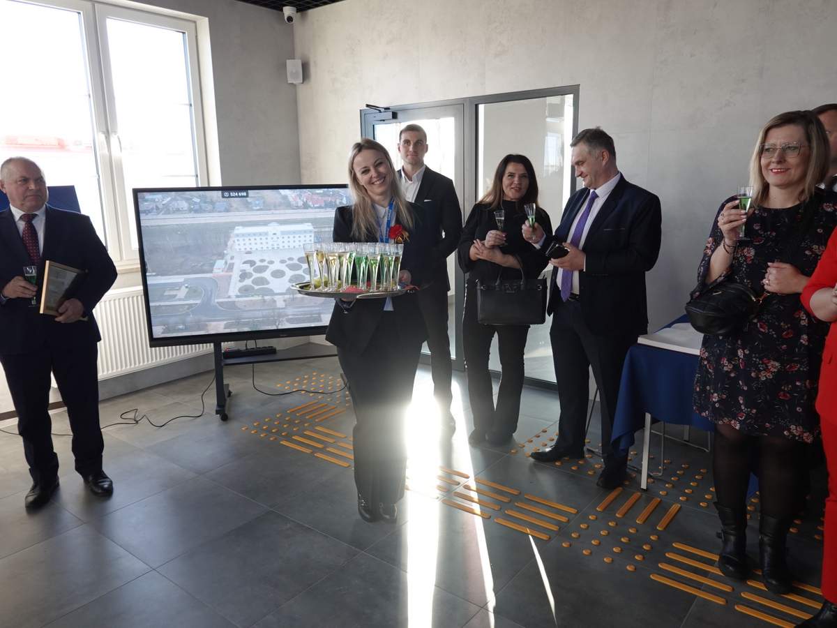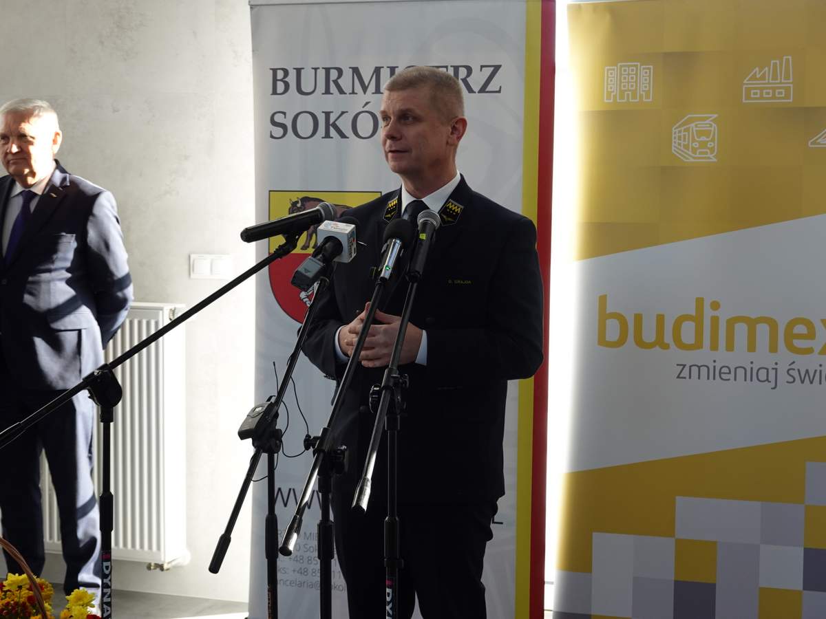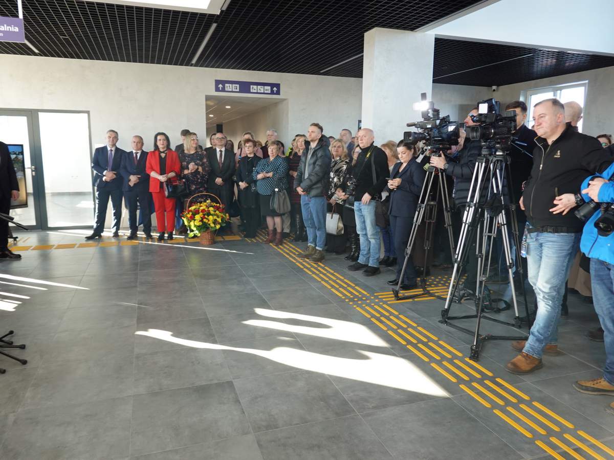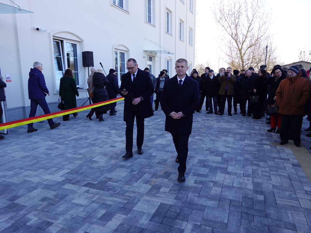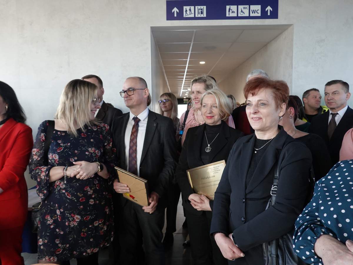 Po przecięciu wstęgi przed wejściem do budynku, uczestnicy uroczystości zgromadzili się w holu na parterze obiektu. Do zebranych zwróciła się Burmistrz Sokółki Ewa Kulikowska