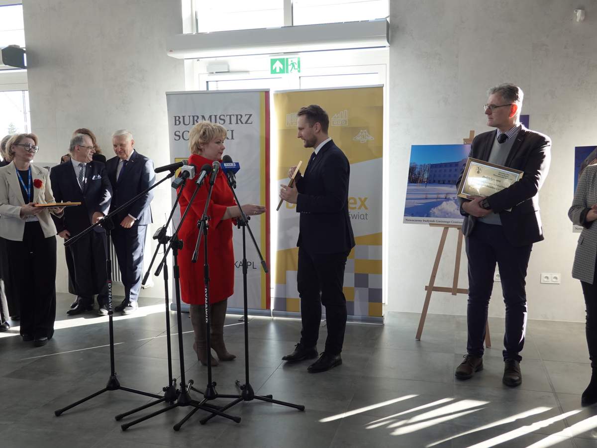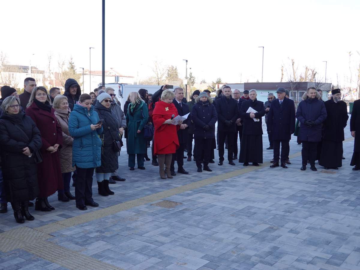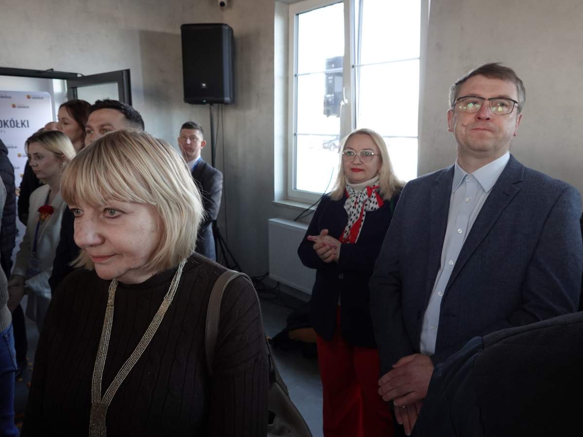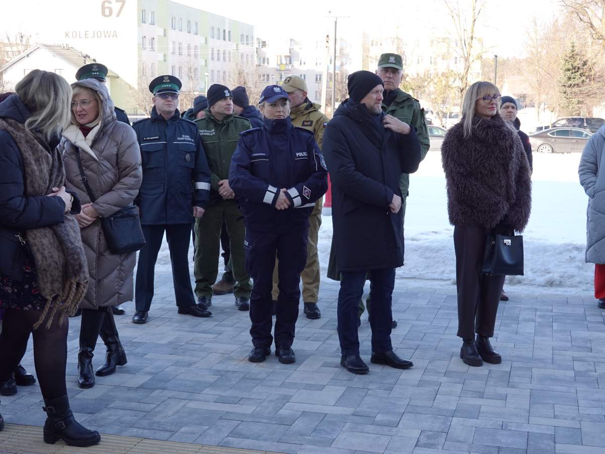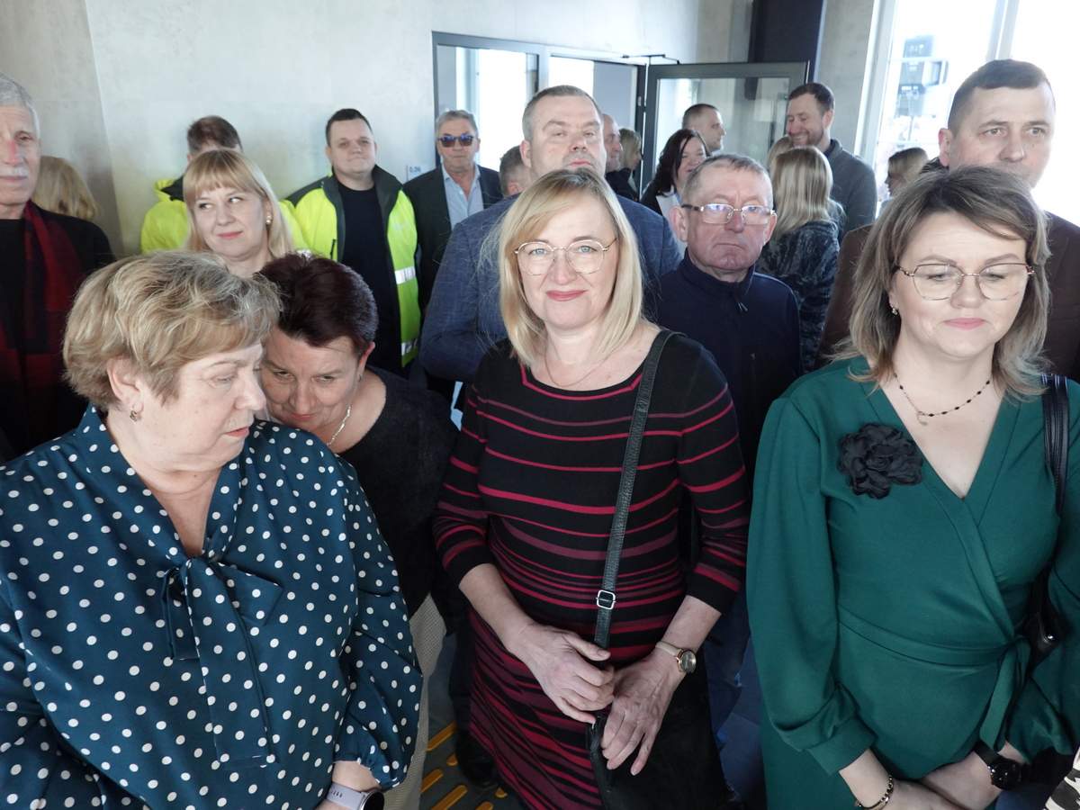 Po przecięciu wstęgi przed wejściem do budynku, uczestnicy uroczystości zgromadzili się w holu na parterze obiektu. Do zebranych zwróciła się Burmistrz Sokółki Ewa Kulikowska