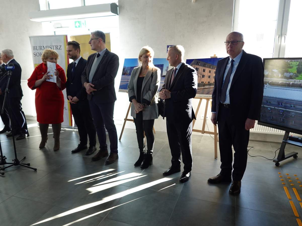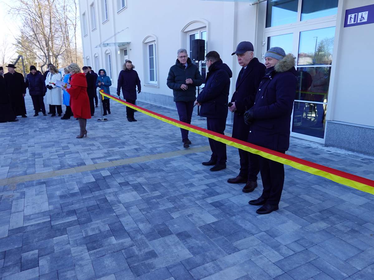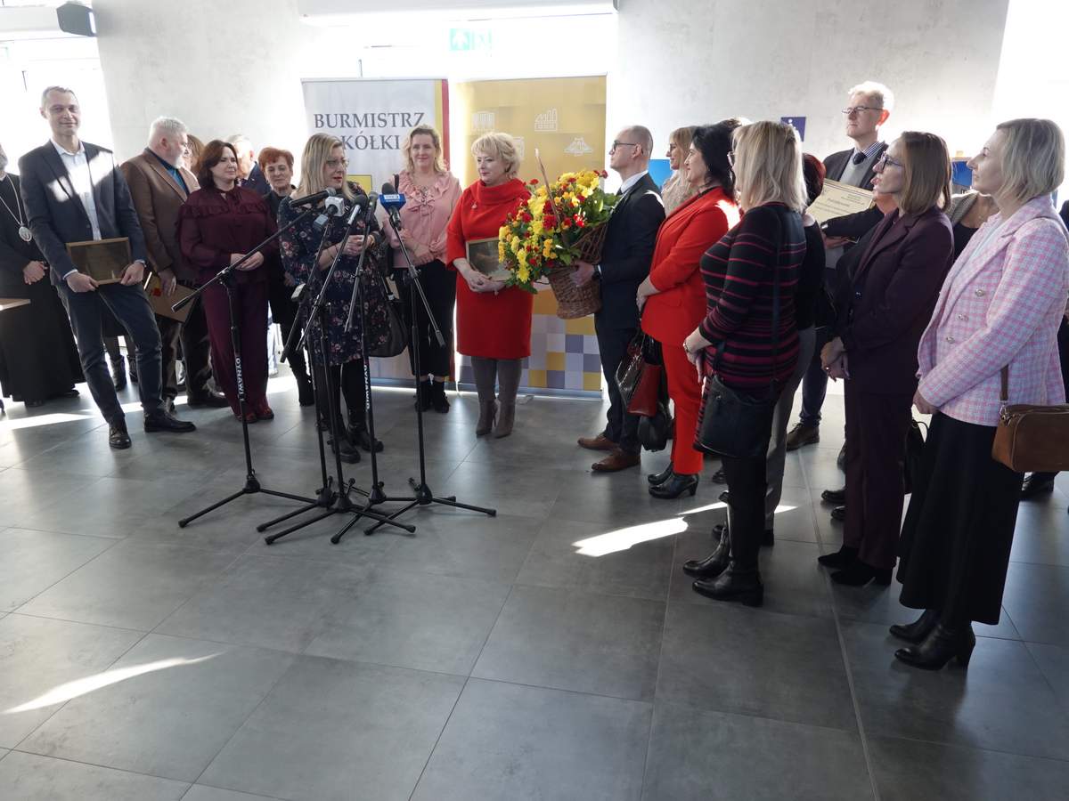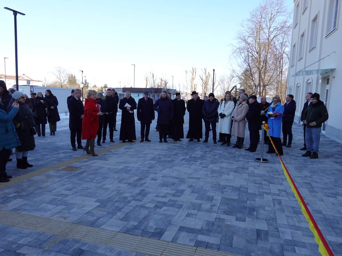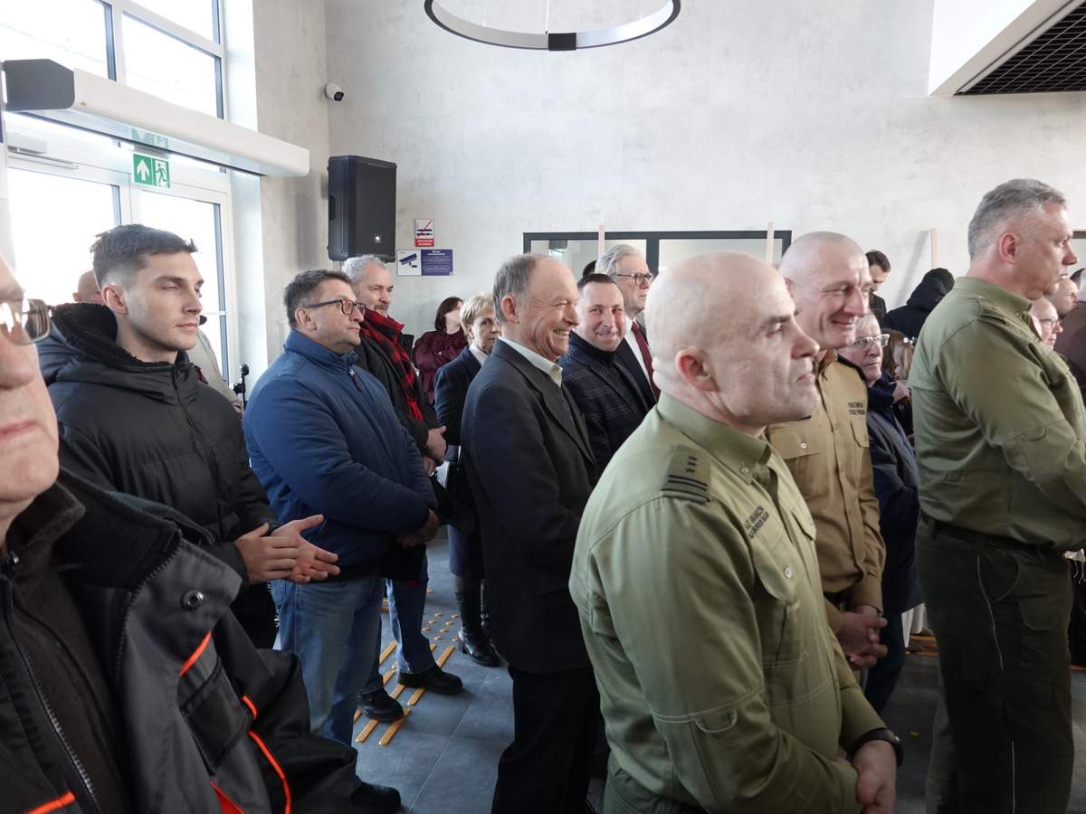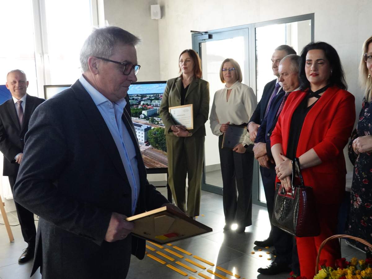 Po przecięciu wstęgi przed wejściem do budynku, uczestnicy uroczystości zgromadzili się w holu na parterze obiektu. Do zebranych zwróciła się Burmistrz Sokółki Ewa Kulikowska