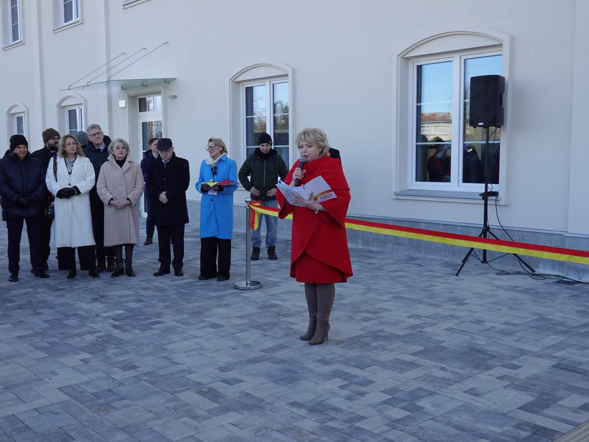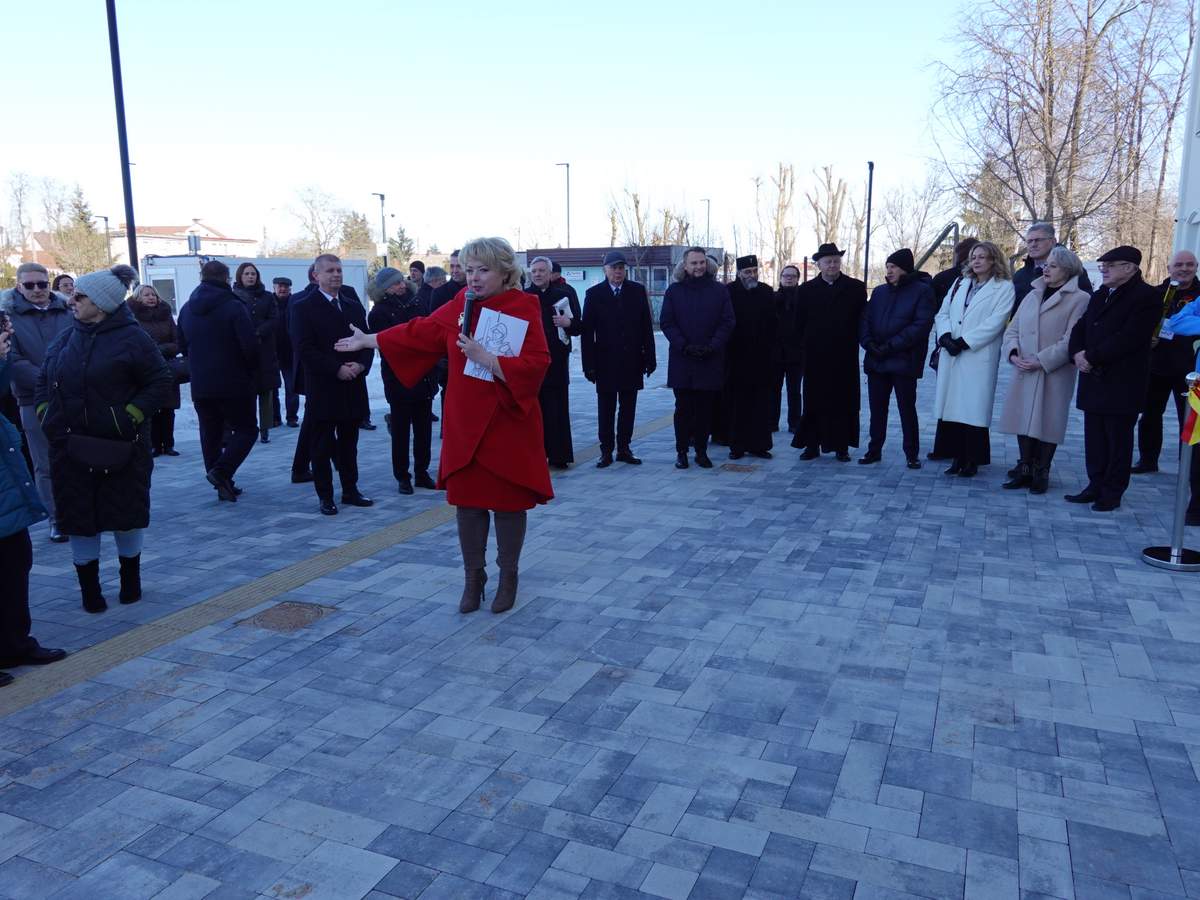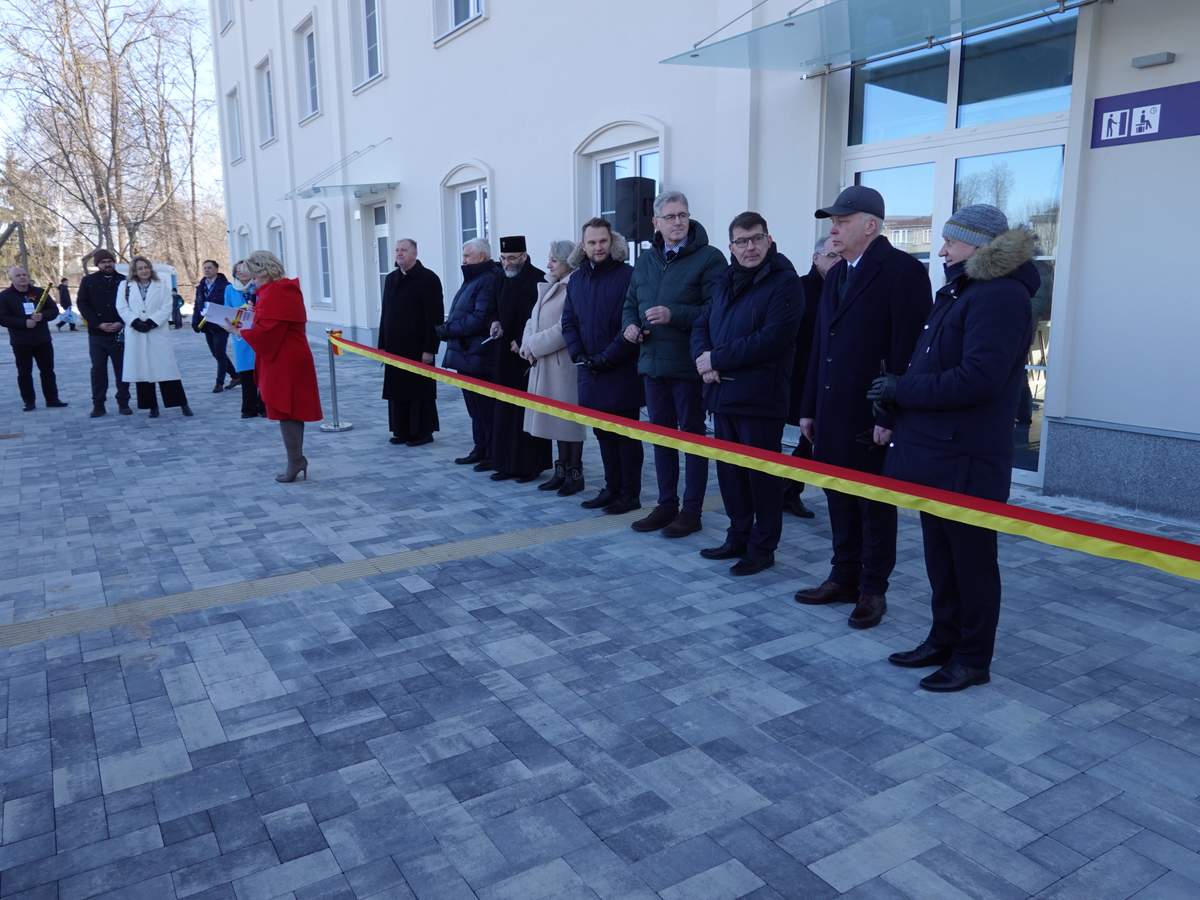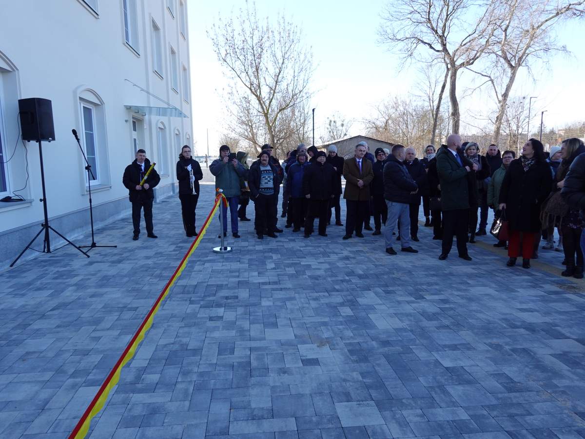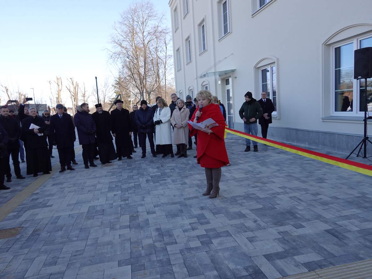 Po przecięciu wstęgi przed wejściem do budynku, uczestnicy uroczystości zgromadzili się w holu na parterze obiektu. Do zebranych zwróciła się Burmistrz Sokółki Ewa Kulikowska