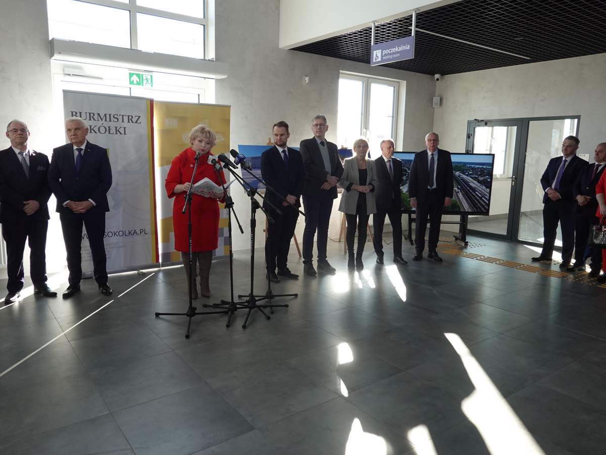 Następnie przedstawia ona rys historyczny obiektu. – Budynek dworca kolejowego w Sokółce pochodził z drugiej połowy XIX wieku. W 1857 roku powołano do życia Główne Towarzystwo Dróg Żelaznych Rosyjskich, które zajęło się budową trasy kolejowej łączącej Warszawę z Petersburgiem. Wiosną 1862 roku tymczasowo uruchomiono odcinek z Warszawy do Białegostoku. Począwszy od 18 maja kursowały tam dwie pary pociągów tygodniowo. We wrześniu uruchomiono odcinek do Grodna, biegnący przez Sokółkę i Kuźnicę, a wkrótce także do Wilna. Stałą komunikację na linii warszawsko-petersburskiej, liczącej 1.330 kilometrów, otwarto 27 grudnia 1862 roku. Podróż pomiędzy końcowymi stacjami trwała wówczas 38 godzin, zaś z Warszawy do Wilna – 14 i pół godziny. W 1865 roku kolej warszawsko-petersburska dysponowała 373 parowozami, 819 wagonami pasażerskimi, 7454 towarowymi. Przejechało nią 1.596.117 pasażerów. W 1914 roku stacja Sokółka posiadała budynek dworcowy, osiem torów postojowych, trzy rampy o długości 331 metrów, pompy, obrotnicę oraz parowozownię na 12 stanowisk. Stacja została zbombardowana podczas wojny polskiej w 1939 roku. Do naszych czasów nie dotrwał budynek wieży wodnej, który znajdował się nieopodal dworca – przypomniała Burmistrz Sokółki