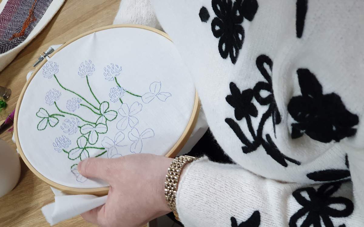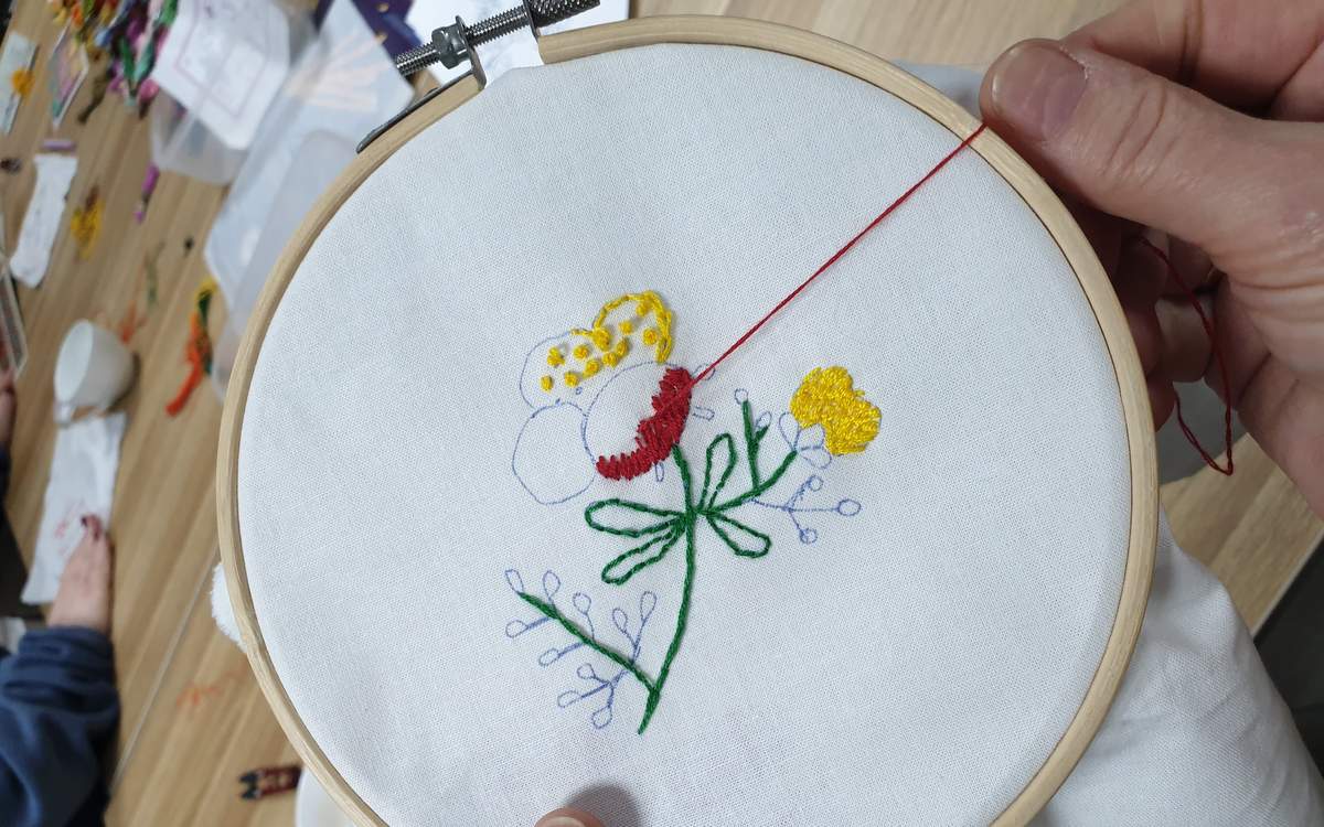 Uczestniczki sobotnich zajęć uczyły się przenosić wzory na tkaninę, ćwiczyły podstawowe ściegi haftu płaskiego, doskonaliły umiejętność dobierania ściegów do konkretnych projektów. Doświadczenie i wiedza instruktorki pomagały warsztatowiczkom w stawianiu pierwszych kroków w dziedzinie haftu. A dzięki doskonałej i luźnej atmosferze był to doskonały sposób na spędzenie sobotniego popołudnia.