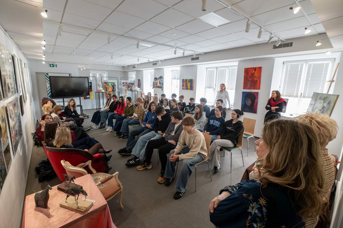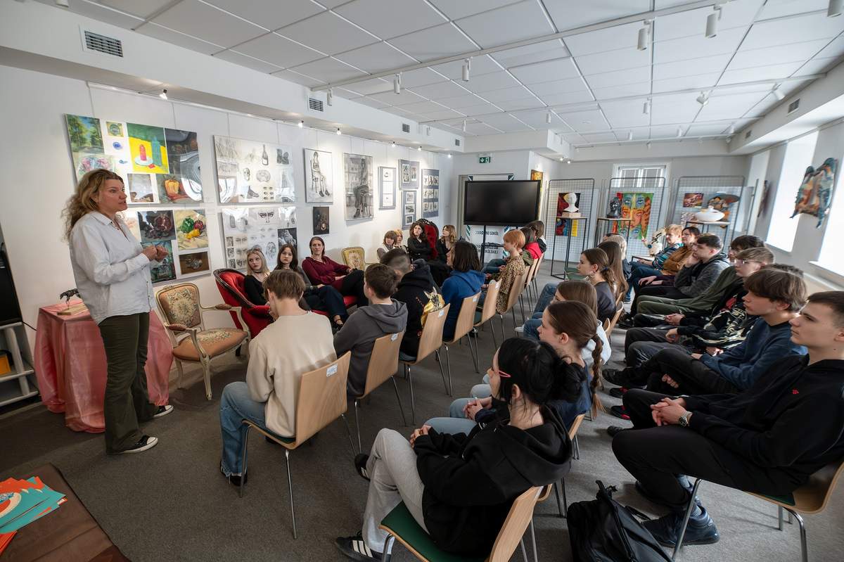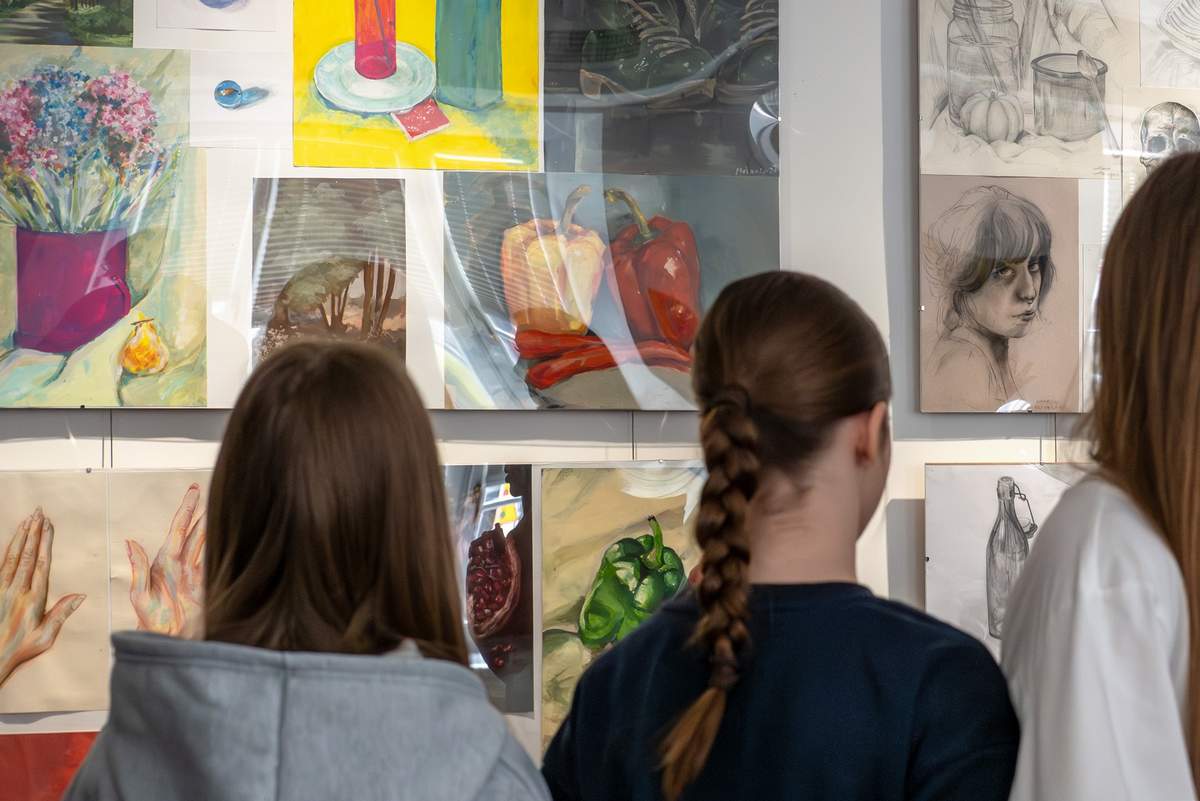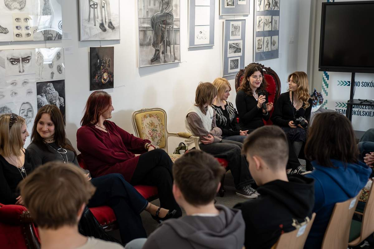 W piątek (10.04.2026) w Sokólskim Ośrodku Kultury otworzona została wystawa prac przyszłych artystów, czyli adeptów PLSP w Supraślu. O szkole opowiadały z pasją licealistki: Kinga, Wiktoria, Julia, Melania, Weronika i Ola – a wysłuchali ich uczniowie kl. 8 z SP 1 im. A. Mickiewicza w Sokółce i kl. 7 z SP z Oddziałami Integracyjnymi nr 2 w Sokółce.