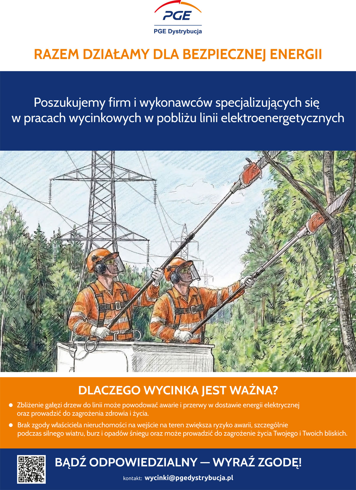 PGE Dystrybucja rozpoczęła też akcję informacyjną mającą na celu uświadomienie lokalnej społeczności, jak istotne jest wyrażenie zgody właścicieli na wejście na teren ich nieruchomości i wykonanie niezbędnych prac eksploatacyjnych polegających na wycince zadrzewienia znajdującego się w pobliżu linii elektroenergetycznych.