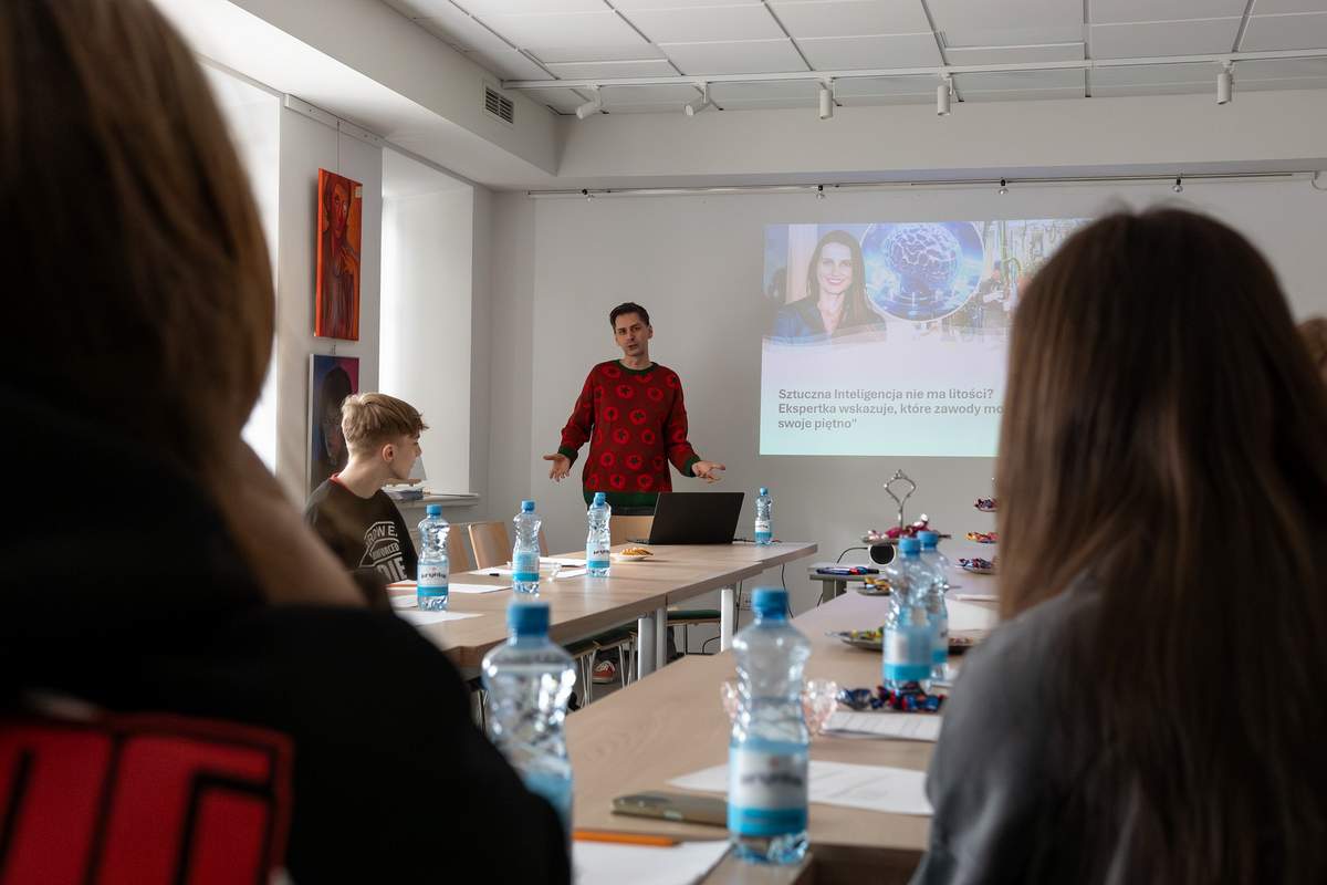 Wszystkie trzy bloki tematyczne miały formę warsztatów. Otworzył je wykładowca, marketingowiec i ekspert ds. SM Dominik Sołowiej prelekcją ph. „Nie daj się nabrać” – podejmującą temat fakenewsów, dezinformacji i AI w służbie tego procederu. Wnioski po zajęciach warsztatowicze wysnuli bez problemu: to właścicielom najnowszych technologii zależy na produkowaniu nieprawdziwych treści, im bardziej zaangażują nasze emocje, tym częściej mogą nam wyświetlać reklamy, posty, filmiki i na tym zarabiać. – W tym świecie walutą są nasze dane, uwaga i reakcja w postaci kliknięcia – podkreślał Sołowiej.